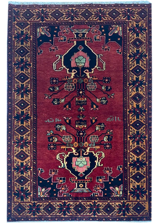 این طرح تنها در قالی های محرابی بلوچ دیده می شود . در دو سوی محراب گاه کتبه هایی با آیات قرآنی و یا شهادتین مشاهده می شوند . اساس طرح بر درخت زندگی استوار است که از آن شاخه های پربرگ منشعب شده اند .