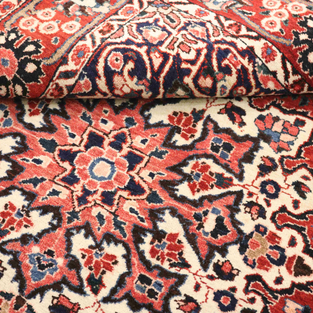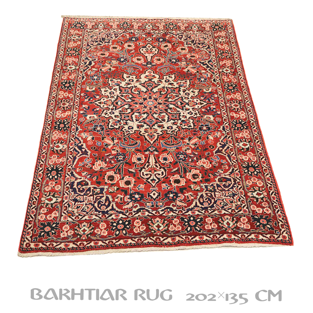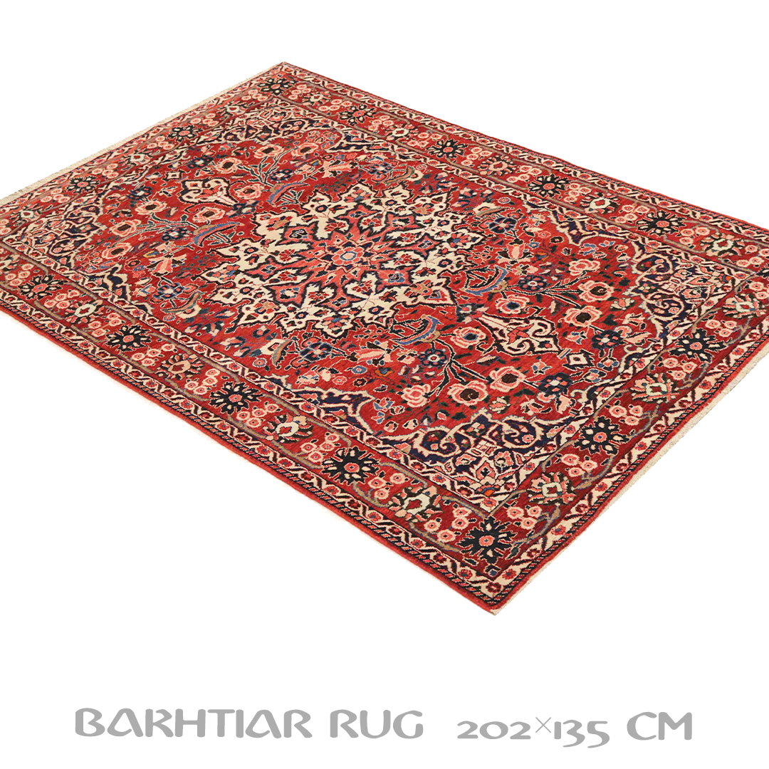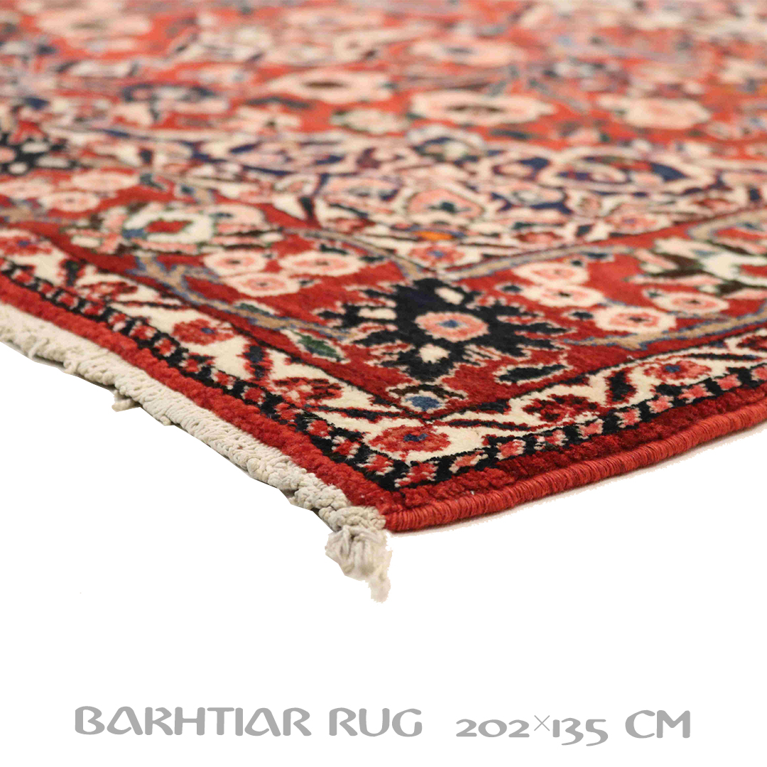 کد فرش:319932 -فرش دستبافت بختیاربه شکل مستطیل ودر ابعاد: 202سانتیمترمربع و عرض:135سانتیمترمربع درایل بختیار بافته شده است،جنس چله فرش از پشم و جنس پودها از پشم میباشد ،رنگ زمینه فرش قرمز و رنگ حاشیه قرمز است ،رنگها گیاهی و ثابت است در اثر شستشو دچار تغییر رنگ و پس دادن و پخش شدن رنگ در فرش نمیشود،مساحت که فرش در منزل شما اشغال میکند 2.72متر مربع میباشد،ضخامت و قطر آن در حدود ۱۵میلی متر ودارای وزن 9.54کیلوگرم است،در بافت فرش از نقوش ترنج استفاده شده و طرح خاص و بی نظیر میباشد .نحوه ی رنگرزی سنتی با استفاده از رنگهای گیاهی طبیعی و ارگانیک میباشد،و همین امر فرش را خوش رنگ و باکیفیت کرده است.