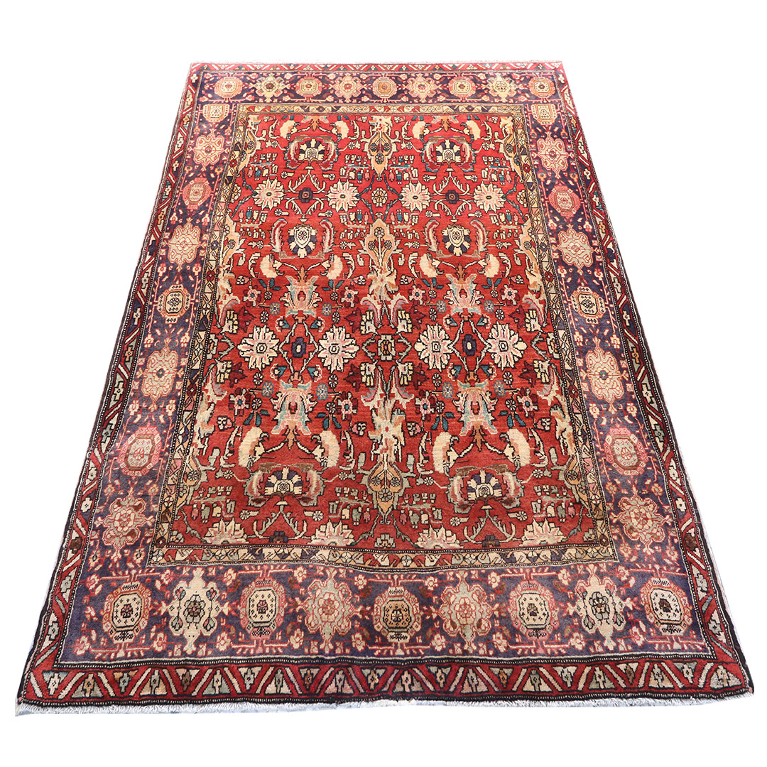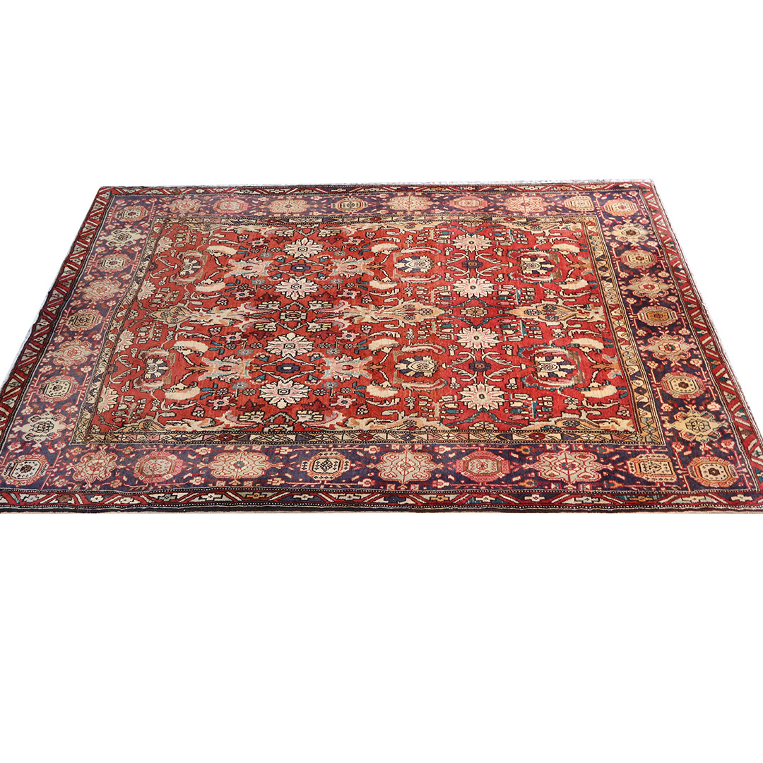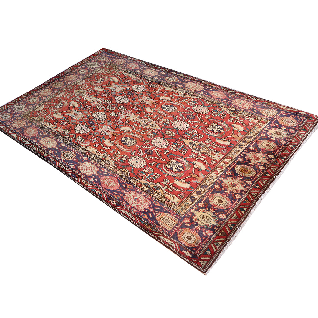 کد فرش:1792 -فرش دستبافت بیجار به شکل مستطیل ودر ابعاد: 206سانتیمترمربع و عرض:130 سانتیمترمربع در شهرستان بیجار بافته شده است،جنس چله فرش از نخ و جنس پودها از پشم میباشد ،رنگ زمینه فرش سورمه ای و رنگ حاشیه سورمه ای است ،رنگها گیاهی و ثابت است در اثر شستشو دچار تغییر رنگ و پس دادن و پخش شدن رنگ در فرش نمیشود،مساحت که فرش در منزل شما اشغال میکند 2.67متر مربع میباشد،ضخامت و قطر آن در حدود ۱۵میلی متر ودارای وزن ۱۰کیلوگرم است،در بافت فرش از نقوش طبیعت و گل و بوته استفاده شده و طرح خاص و بی نظیر میباشد .نحوه ی رنگرزی سنتی با استفاده از رنگهای گیاهی طبیعی و ارگانیک میباشد،و همین امر فرش را خوش رنگ و باکیفیت کرده است.