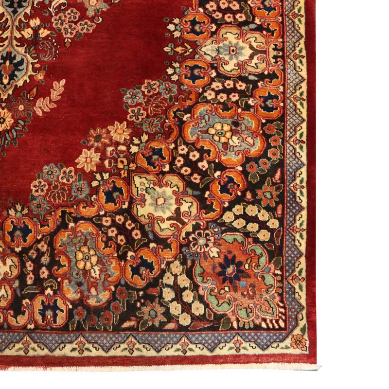 فرش دستبافت بیرجند(221×320) سانتیمتر با رنگ زمینه لاکی و حاشیه مشکی و مساحت 7 متر مربع و وزن 24.7 کیلوگرم است.