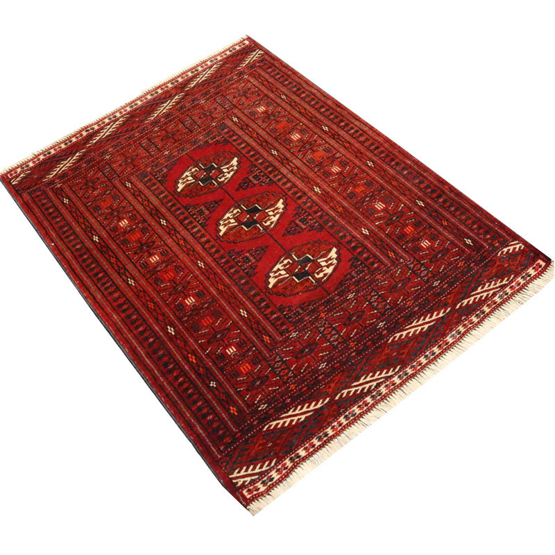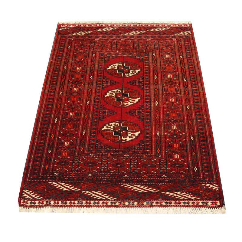 طرح فرش دستبافت ترکمن (83×109) سانتیمتر سراسر هندسی از جنس پشم با مرغوبیت بالا و با کیفیت است .