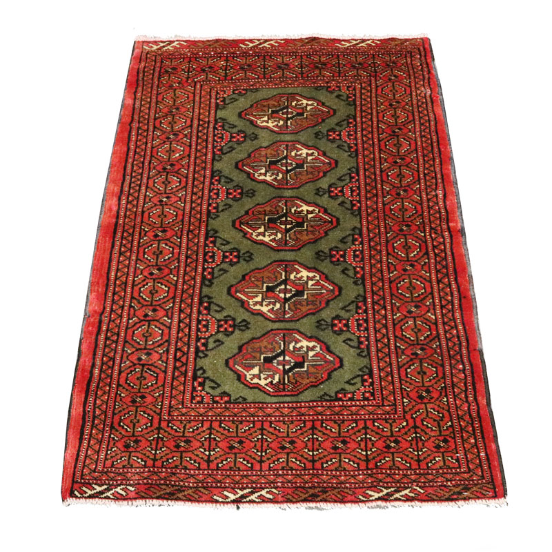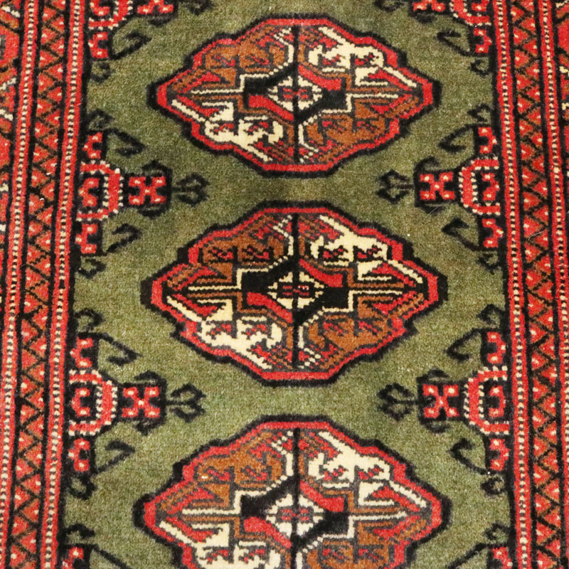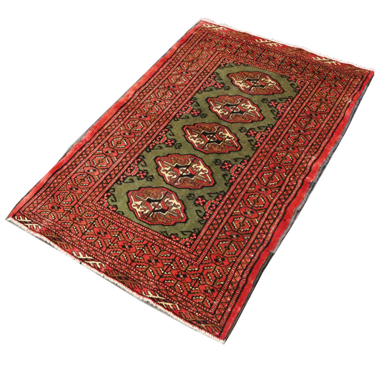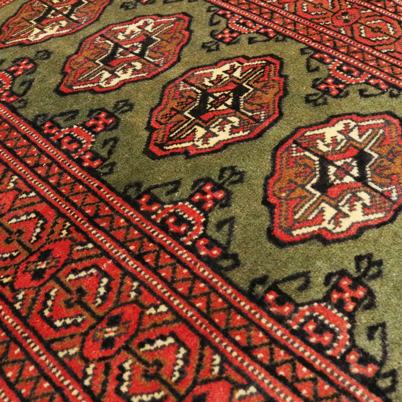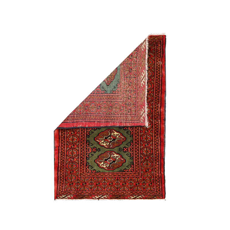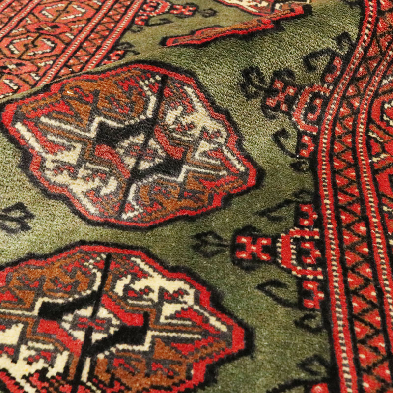 فرش دسبافت ترکمن با رنگ زمینه سبز و حاشیه لاکی با مساحت 0.81 متر مربع و وزن 2.83 کیلوگرم و ضخامت 1 میلیمتر است.