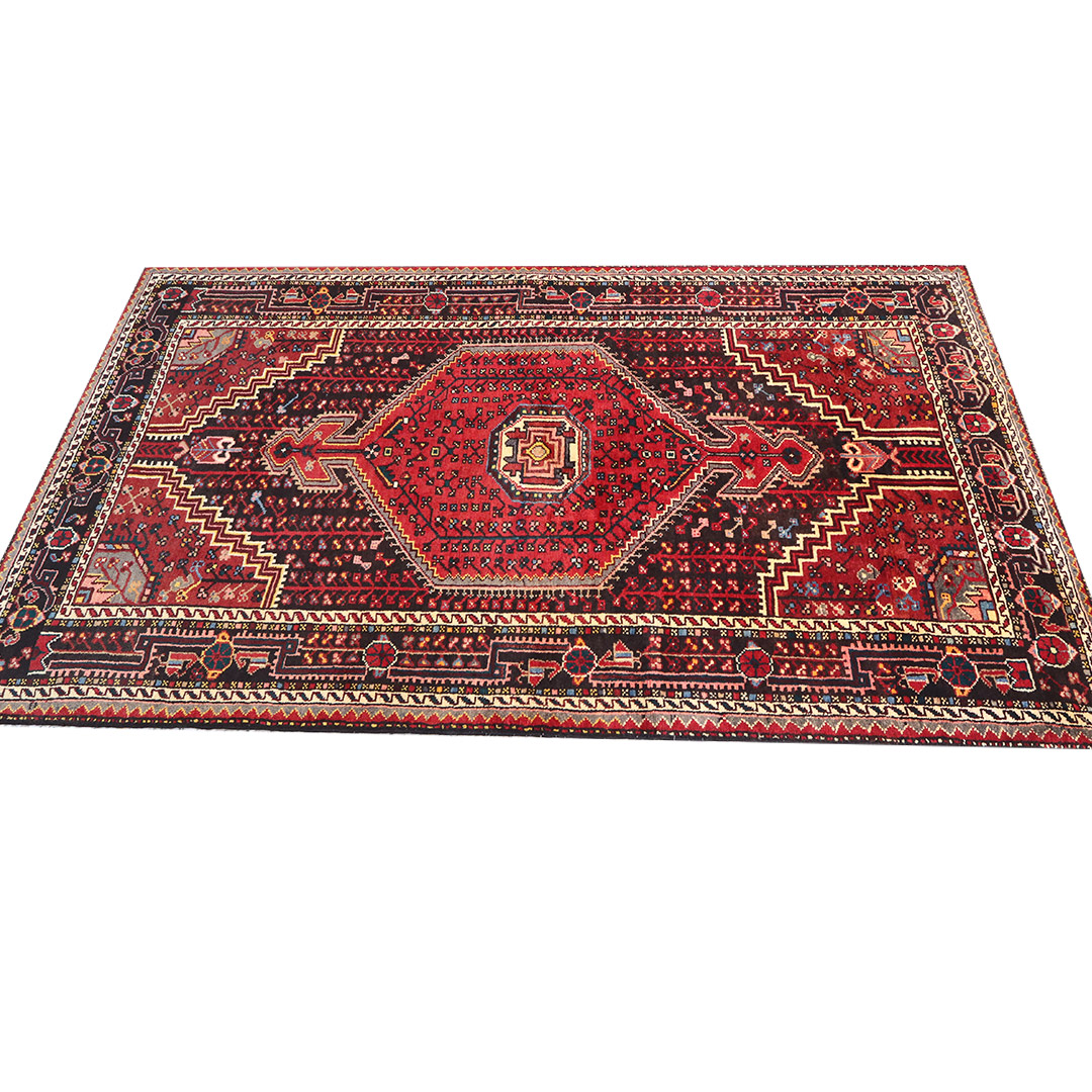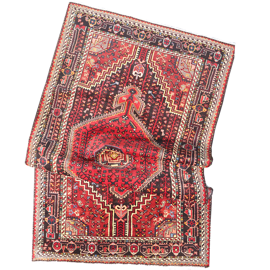 کد فرش:3422 -فرش دستبافت تویسرکان به شکل مستطیل ودر ابعاد: 227سانتیمترمربع و عرض:131 سانتیمترمربع در شهرستان توسرکان بافته شده است،جنس چله فرش از نخ و جنس پودها از پشم میباشد ،رنگ زمینه فرش مشکی  و رنگ حاشیه مشکی است ،رنگها گیاهی و ثابت است در اثر شستشو دچار تغییر رنگ و پس دادن و پخش شدن رنگ در فرش نمیشود،مساحت که فرش در منزل شما اشغال میکند 2.97متر مربع میباشد،ضخامت و قطر آن در حدود ۱۵میلی متر ودارای وزن ۱۰کیلوگرم است،در بافت فرش از نقوش ترنج و هندسی دهنی بافت  استفاده شده و طرح خاص و بی نظیر میباشد .نحوه ی رنگرزی سنتی با استفاده از رنگهای گیاهی طبیعی و ارگانیک میباشد،و همین امر فرش را خوش رنگ و باکیفیت کرده است.
