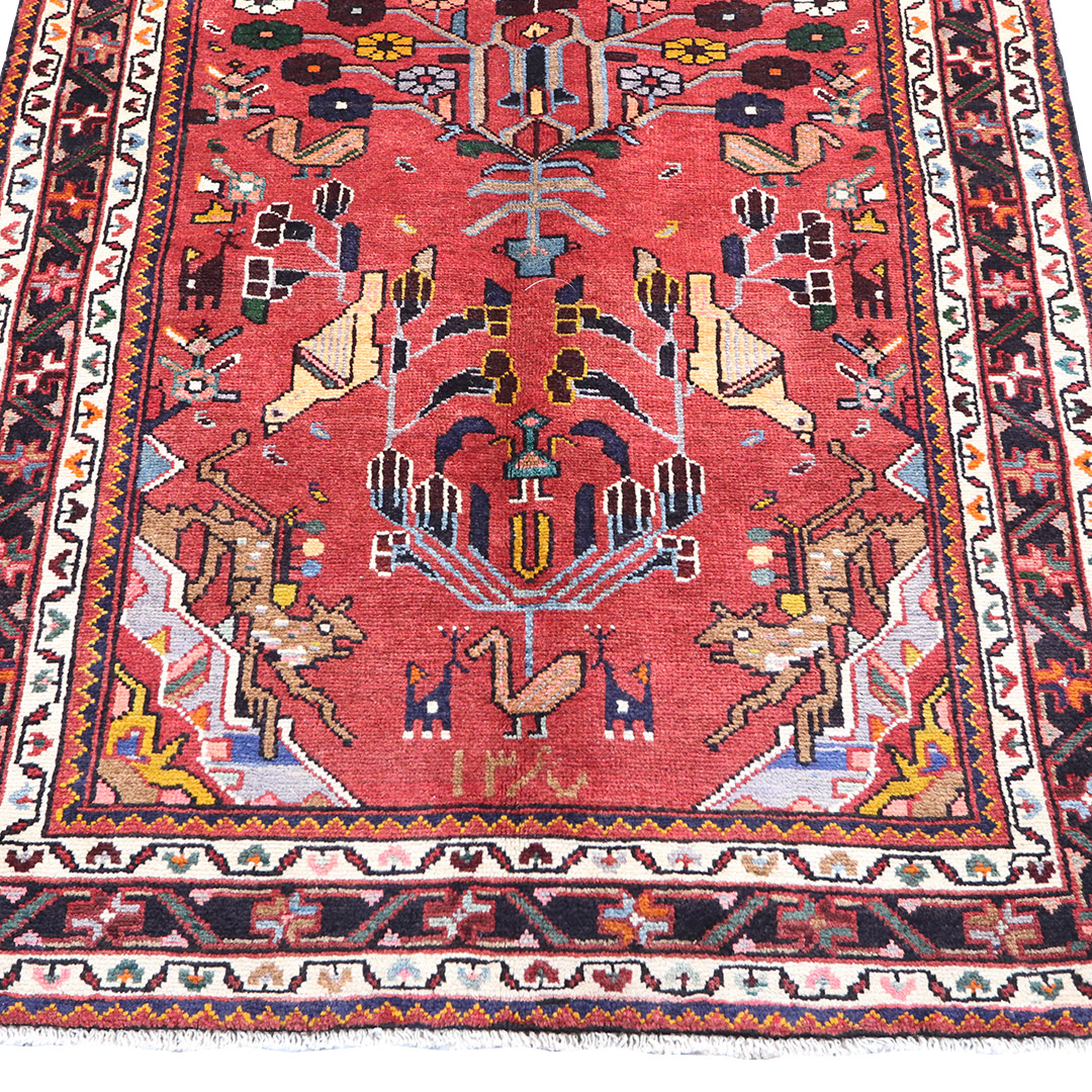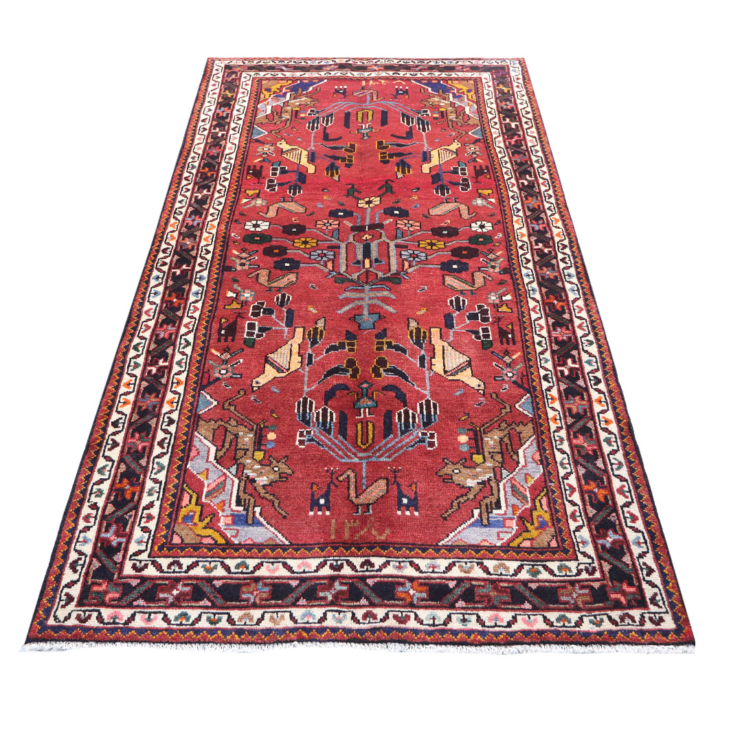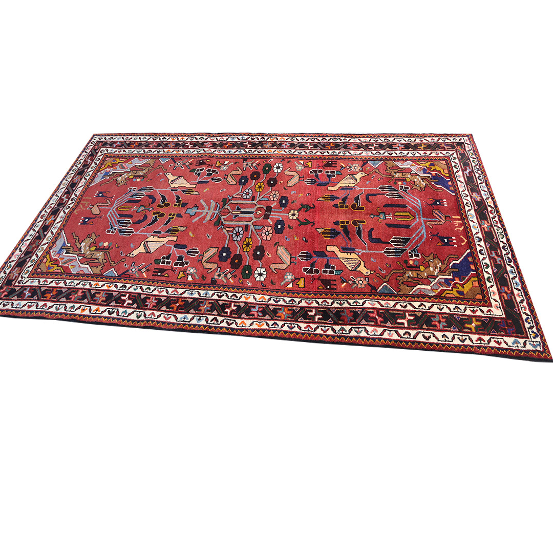 کد فرش:1024 -فرش دستبافت تویسرکان به شکل مستطیل ودر ابعاد: 232سانتیمترمربع و عرض:136 سانتیمترمربع در شهرستان توبسرکان بافته شده است،جنس چله فرش از نخ و جنس پودها از پشم میباشد ،رنگ زمینه فرش لاکی و رنگ حاشیه مشکی است ،رنگها گیاهی و ثابت است در اثر شستشو دچار تغییر رنگ و پس دادن و پخش شدن رنگ در فرش نمیشود،مساحت که فرش در منزل شما اشغال میکند 3.15متر مربع میباشد،ضخامت و قطر آن در حدود ۱۵میلی متر ودارای وزن ۱۰کیلوگرم است،در بافت فرش از نقوش سراسر هندسی استفاده شده و طرح خاص و بی نظیر میباشد .نحوه ی رنگرزی سنتی با استفاده از رنگهای گیاهی طبیعی و ارگانیک میباشد،و همین امر فرش را خوش رنگ و باکیفیت کرده است.