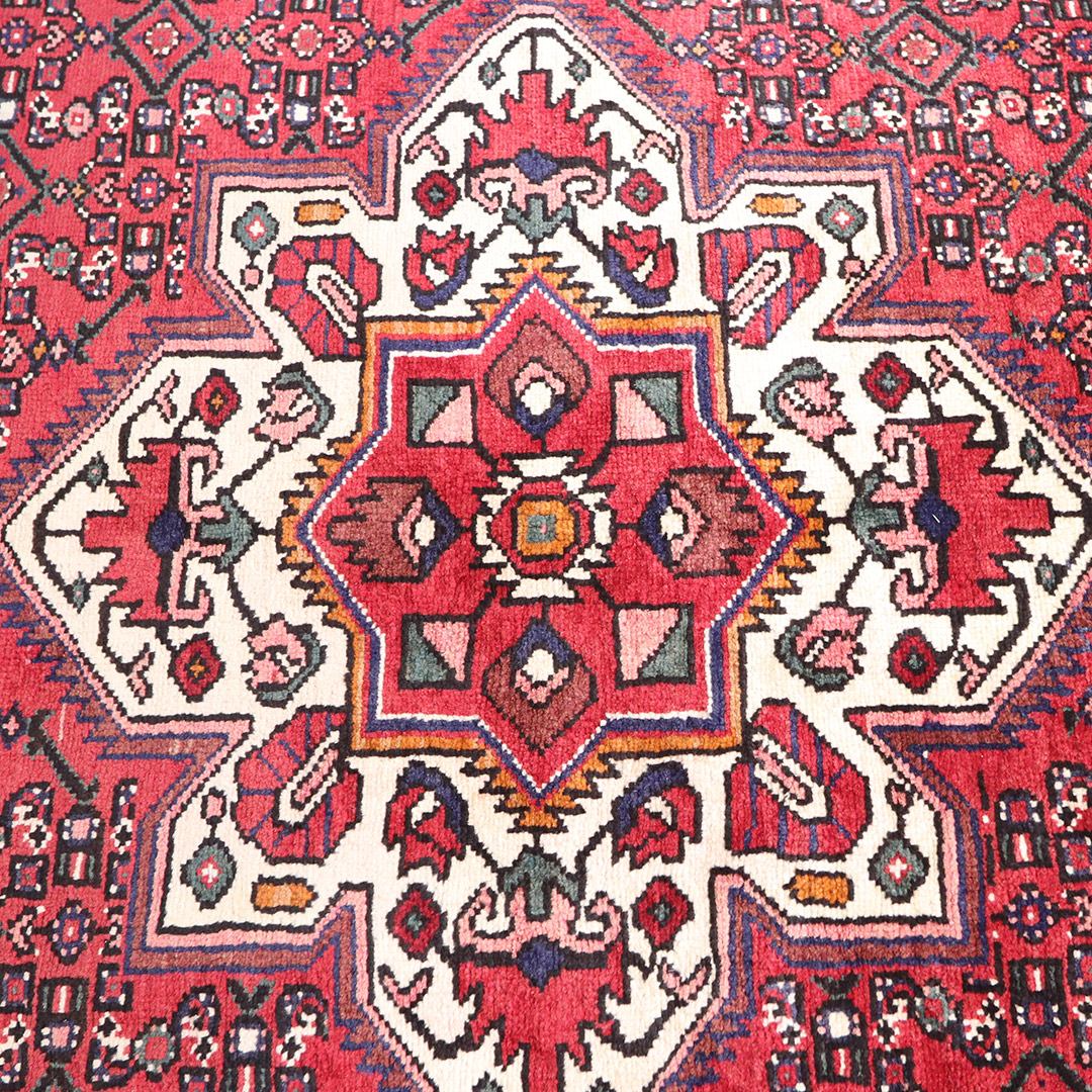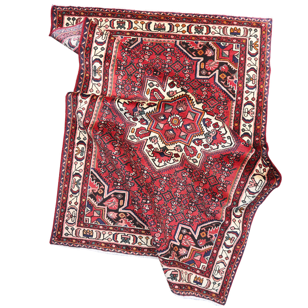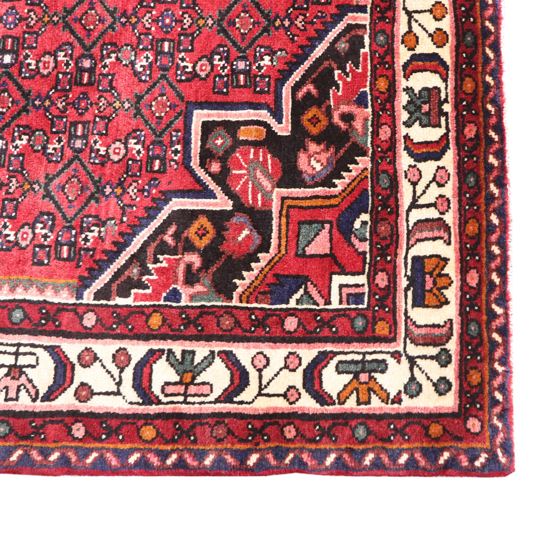 کد فرش:1815 -فرش دستبافت حسین آباد به شکل مستطیل ودر ابعاد: 218سانتیمترمربع و عرض:147 سانتیمترمربع در شهرستان حسین آباد بافته شده است،جنس چله فرش از نخ و جنس پودها از پشم میباشد ،رنگ زمینه فرش سورمه ای و رنگ حاشیه سورمه ای است ،رنگها گیاهی و ثابت است در اثر شستشو دچار تغییر رنگ و پس دادن و پخش شدن رنگ در فرش نمیشود،مساحت که فرش در منزل شما اشغال میکند 3.2متر مربع میباشد،ضخامت و قطر آن در حدود ۱۵میلی متر ودارای وزن ۱۰کیلوگرم است،در بافت فرش از نقوش طبیعت و گل و بوته استفاده شده و طرح خاص و بی نظیر میباشد .نحوه ی رنگرزی سنتی با استفاده از رنگهای گیاهی طبیعی و ارگانیک میباشد،و همین امر فرش را خوش رنگ و باکیفیت کرده است.