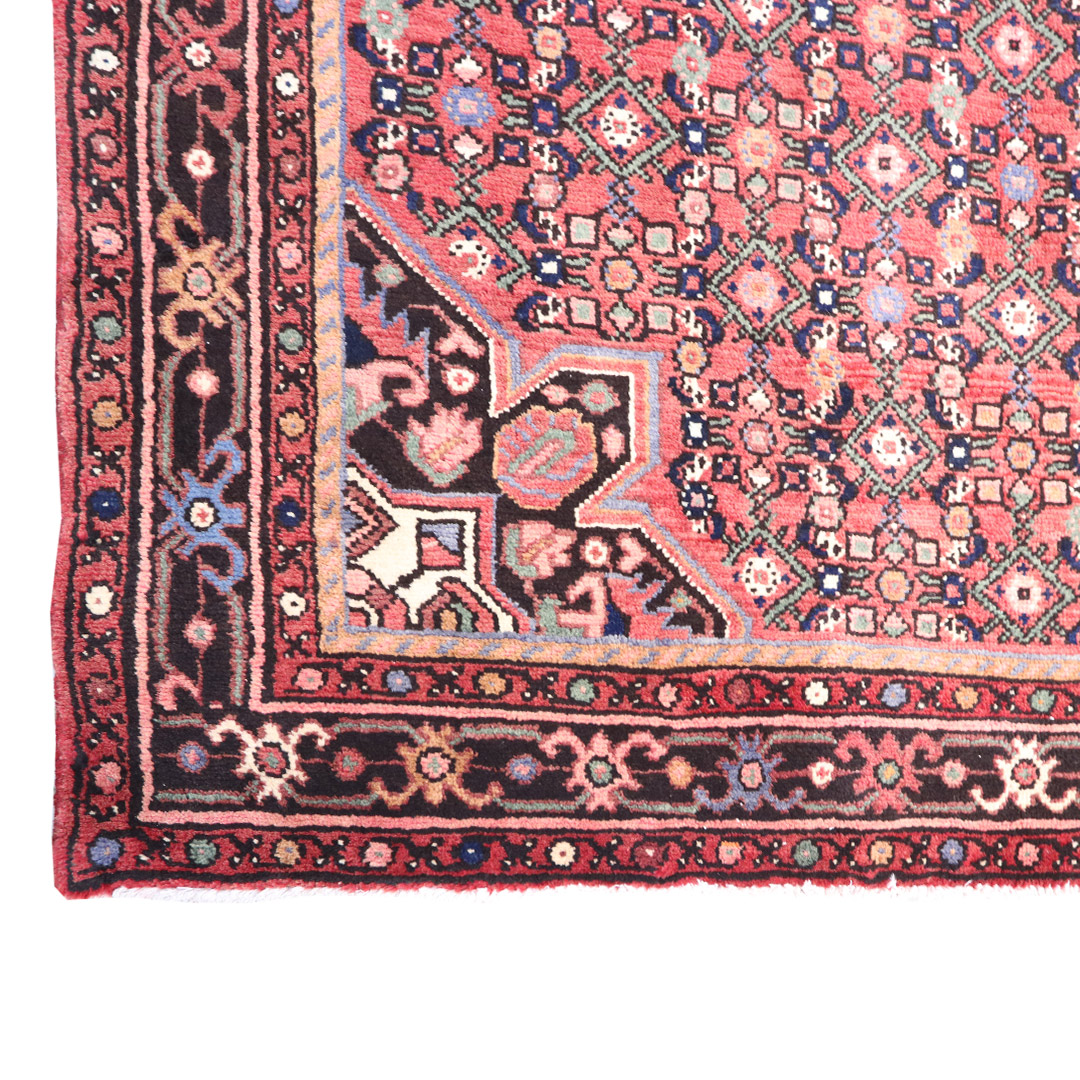کد فرش دستبافت حسین آباد : 2702-فرش دستبافت با نقشه هندسی ذهنی بافت به شکل مستطیل