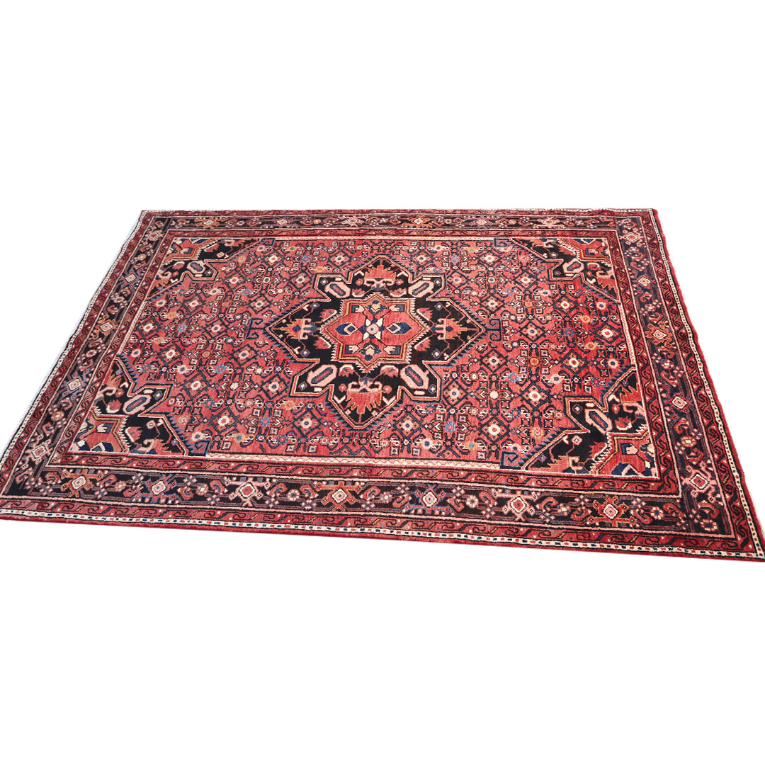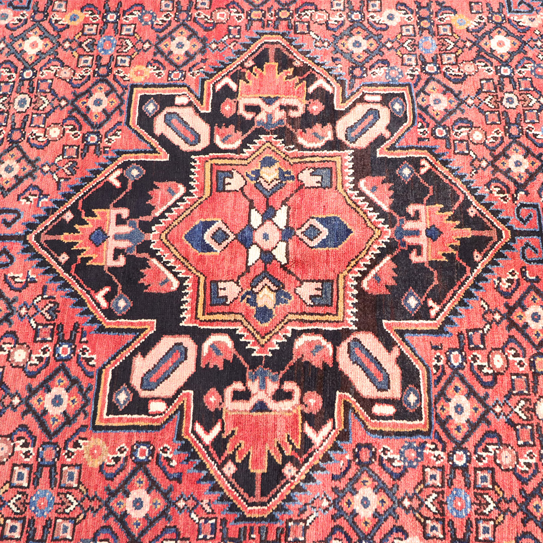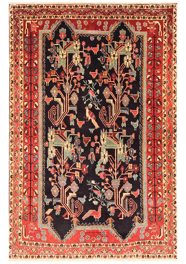 کد فرش:1796 -فرش دستبافت حسین آباد به شکل مستطیل ودر ابعاد: 233سانتیمترمربع و عرض:160 سانتیمترمربع در شهرستانحسین آباد بافته شده است،جنس چله فرش از نخ و جنس پودها از پشم میباشد ،رنگ زمینه فرش سورمه ای و رنگ حاشیه سورمه ای است ،رنگها گیاهی و ثابت است در اثر شستشو دچار تغییر رنگ و پس دادن و پخش شدن رنگ در فرش نمیشود،مساحت که فرش در منزل شما اشغال میکند 3.72متر مربع میباشد،ضخامت و قطر آن در حدود ۱۵میلی متر ودارای وزن ۱۰کیلوگرم است،در بافت فرش از نقوش طبیعت و گل و بوته استفاده شده و طرح خاص و بی نظیر میباشد .نحوه ی رنگرزی سنتی با استفاده از رنگهای گیاهی طبیعی و ارگانیک میباشد،و همین امر فرش را خوش رنگ و باکیفیت کرده است.