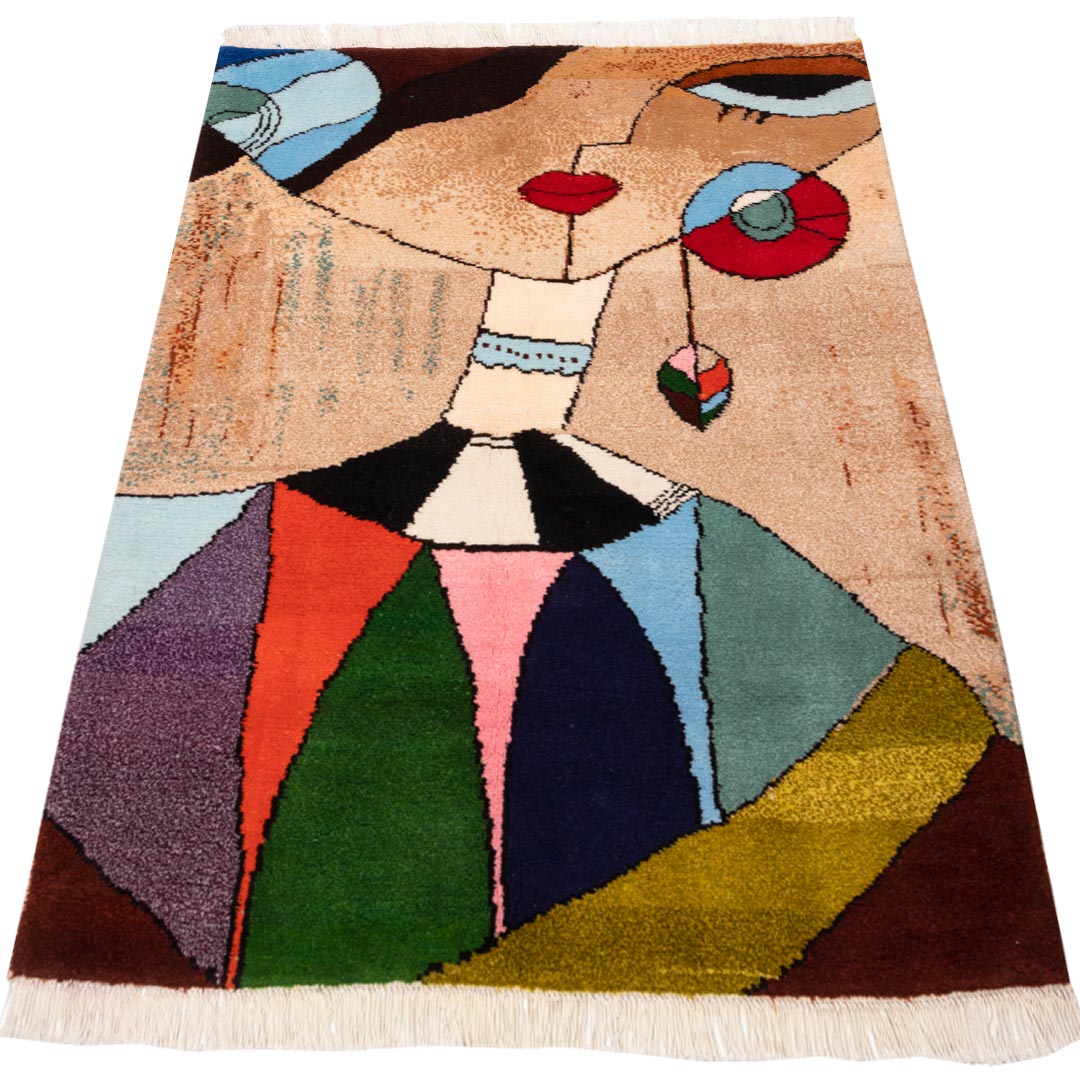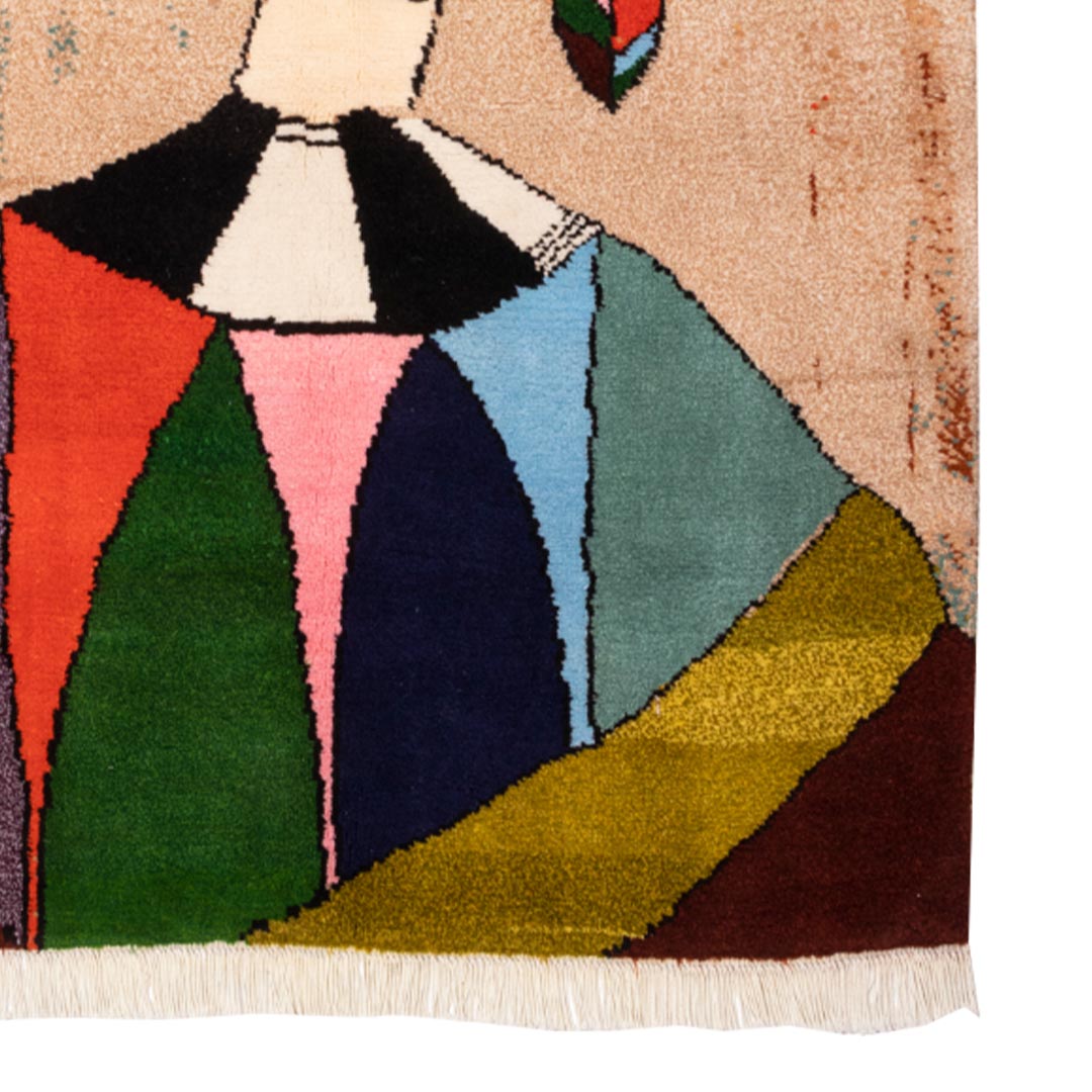 این فرش دست بافت با رنگهای بسیار شاد و جذاب بافتع شد ه است که چشمان هر بیننده ای را به سمت خود جلب میکند.