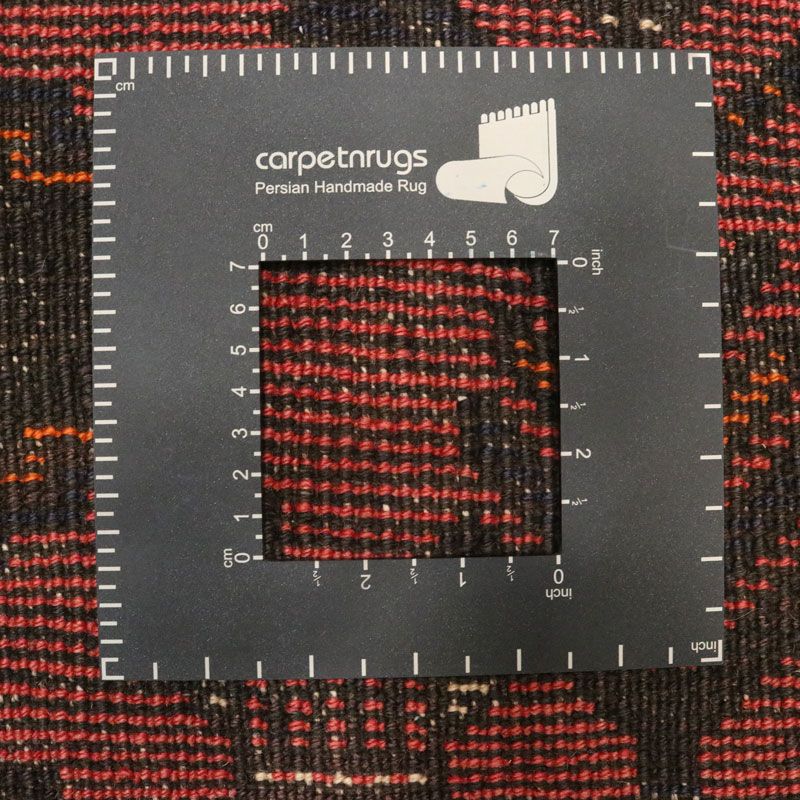 فرش دسبافت با مساحت 6.11 متر مربع و وزن 21.4 کیلوگرم و رنگ زمینه لاکی و حاشیه کرم و ضخامت 3 میلیمتر است.