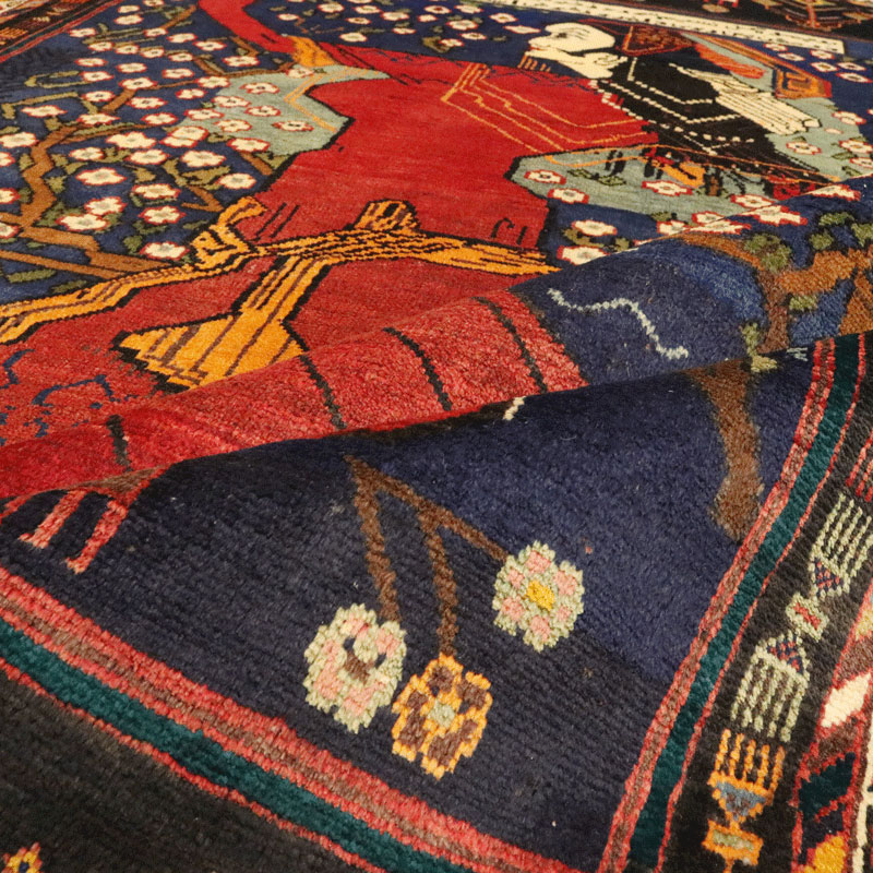 نقشه و طرح فرش تصویری ذهنی بافت و جنس تار و پود آن از پشم خالص است .