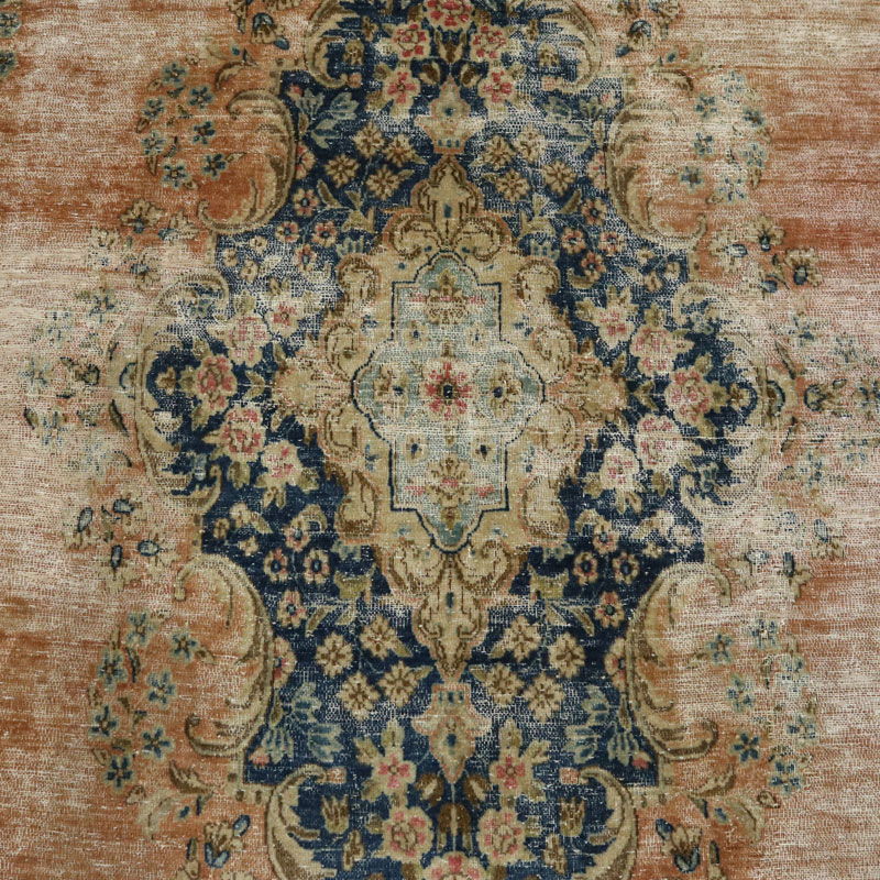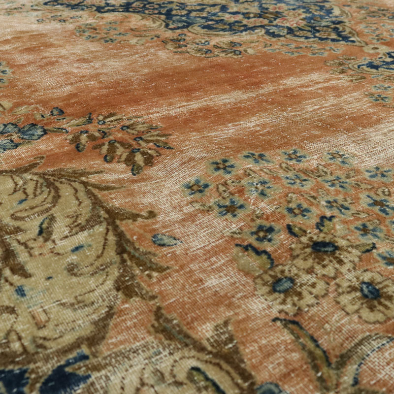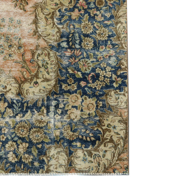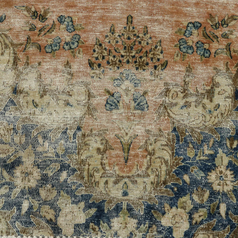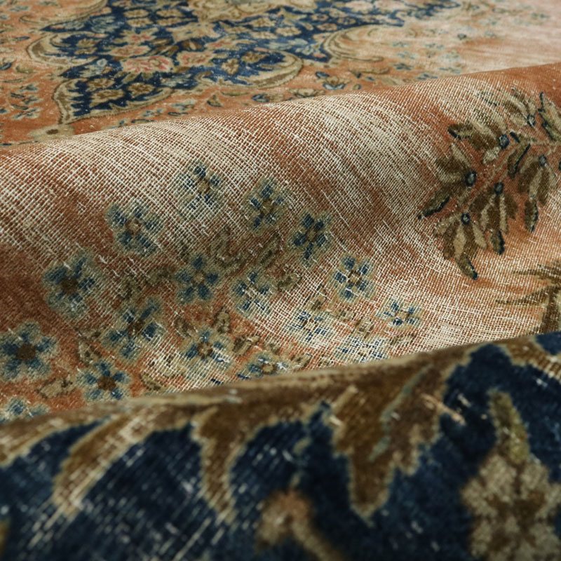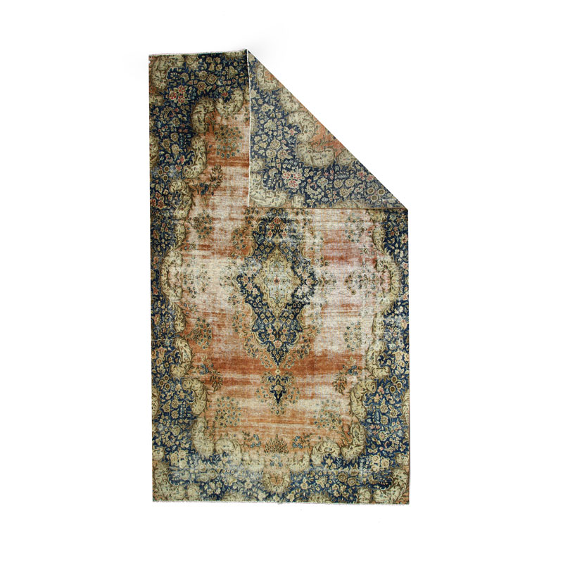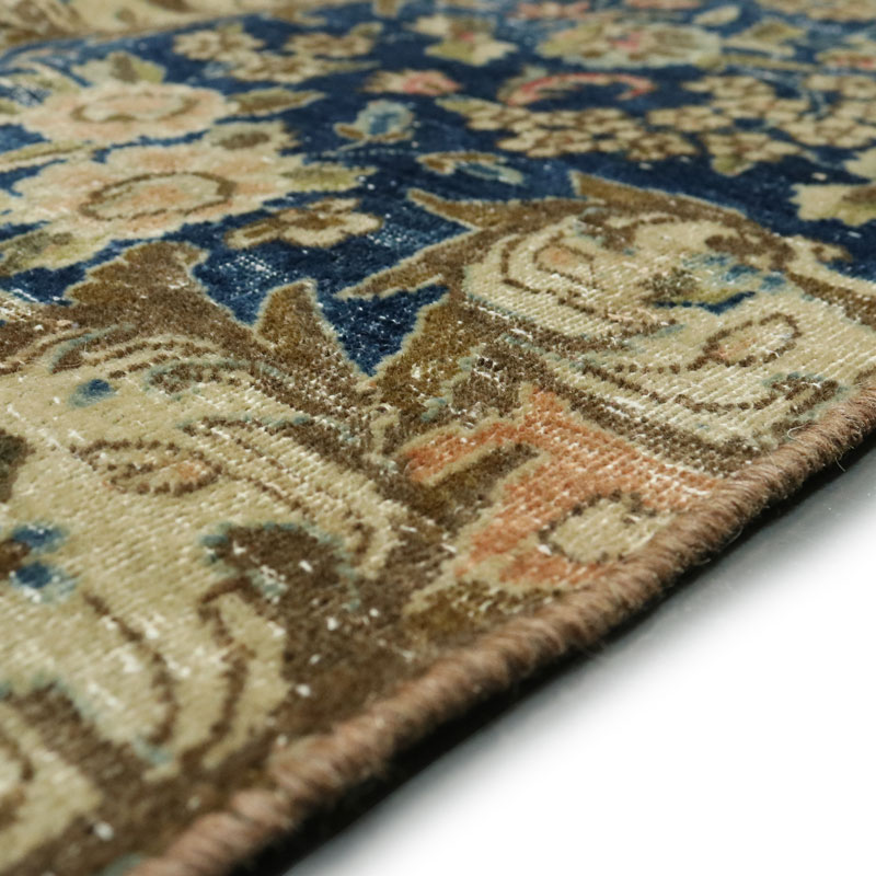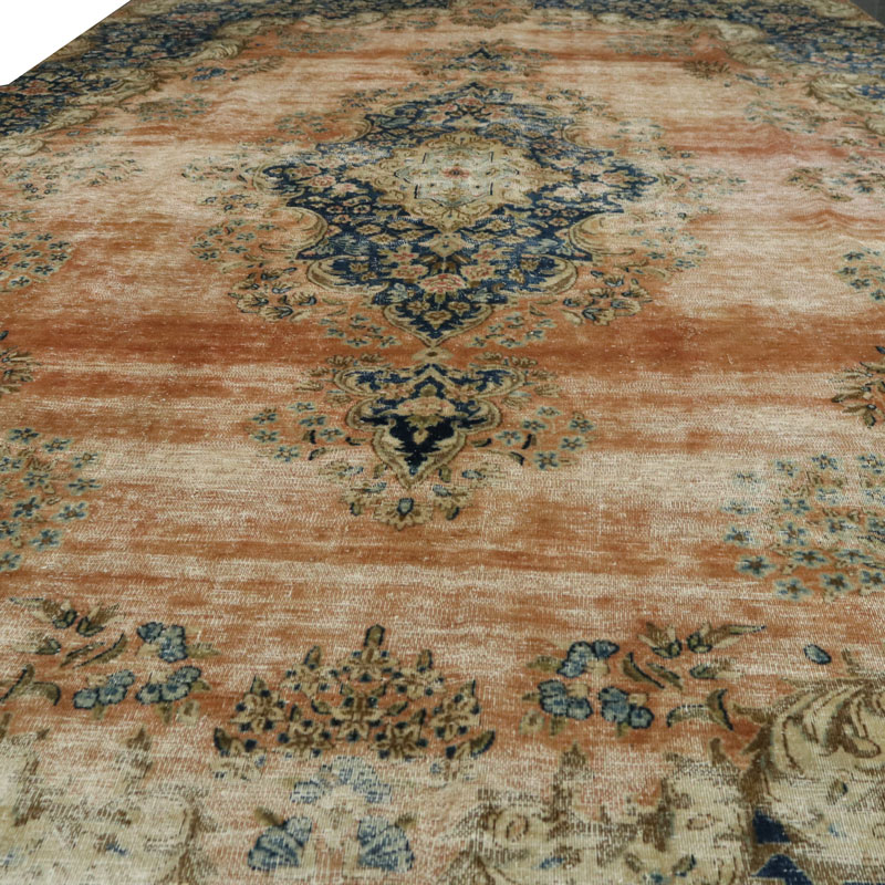 جنس تار و پود ابن فرش دستبافت وینتیج (247×430) سانتیمتر از پشم و کتان مرغوب و طرح لچک ترنج اسلیمی است.