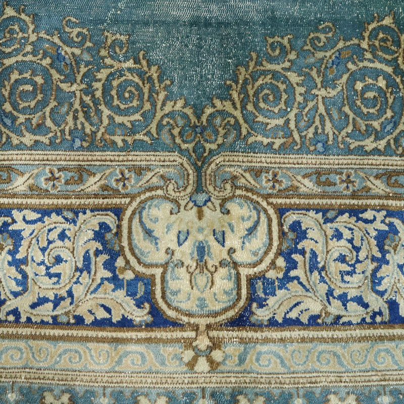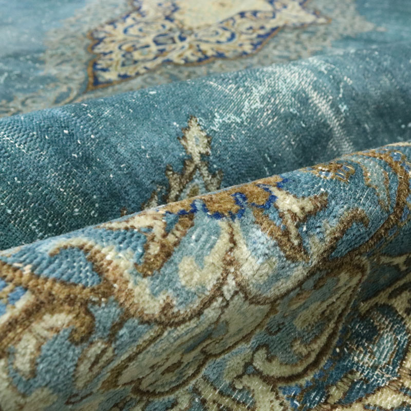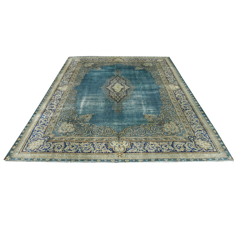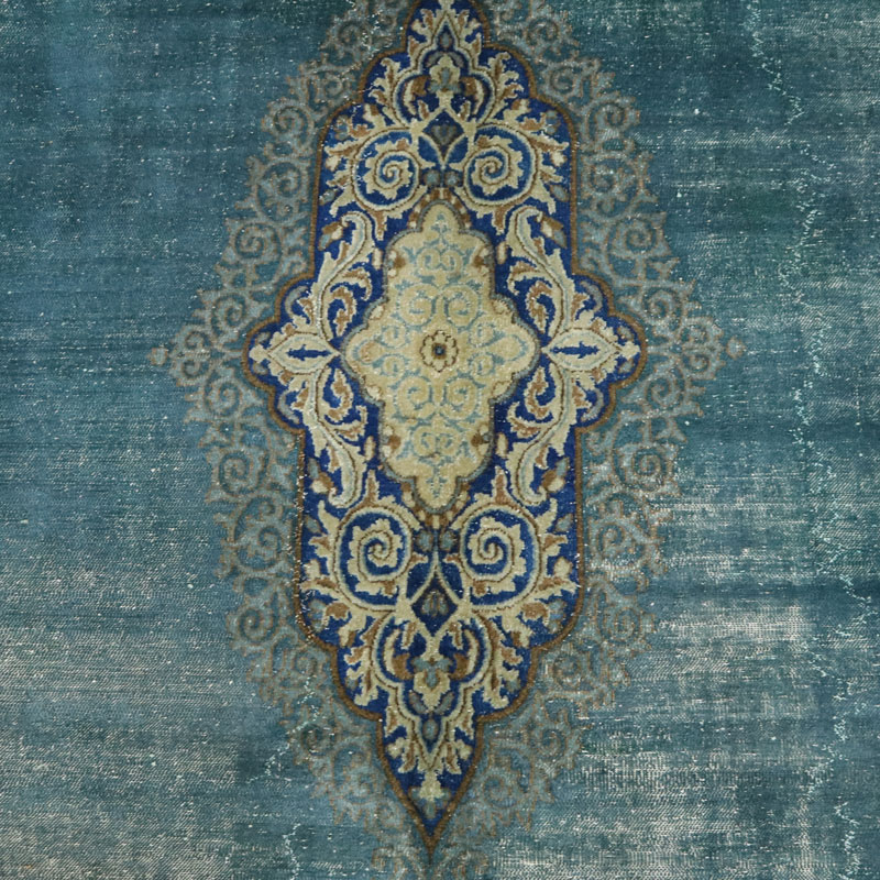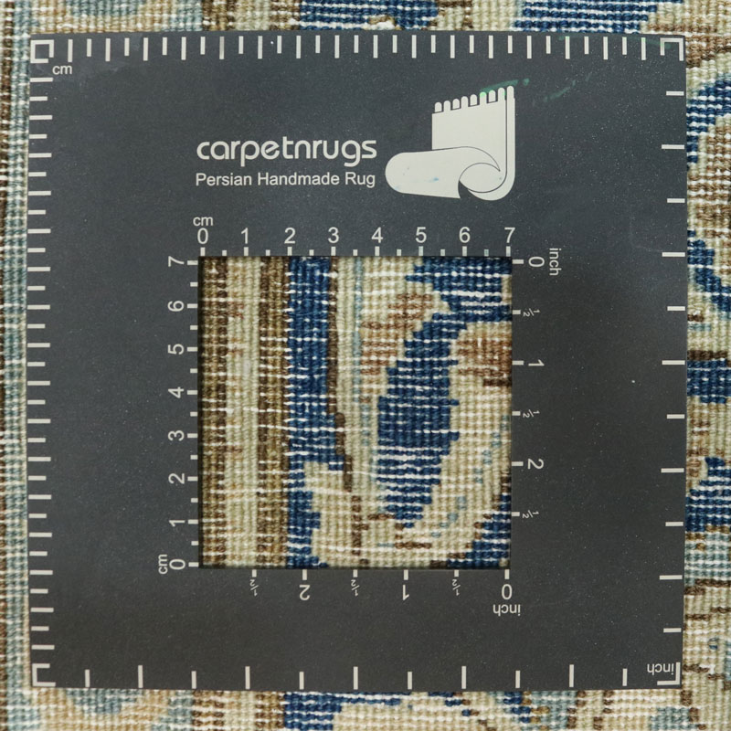 فرش دستبافت وینتیج (260×358) سانتیمتر با رنگ زمینه آبی و حاشیه کرم و مساحت 9.3 مترمربع و وزن 32.57 کیلوگرم است.