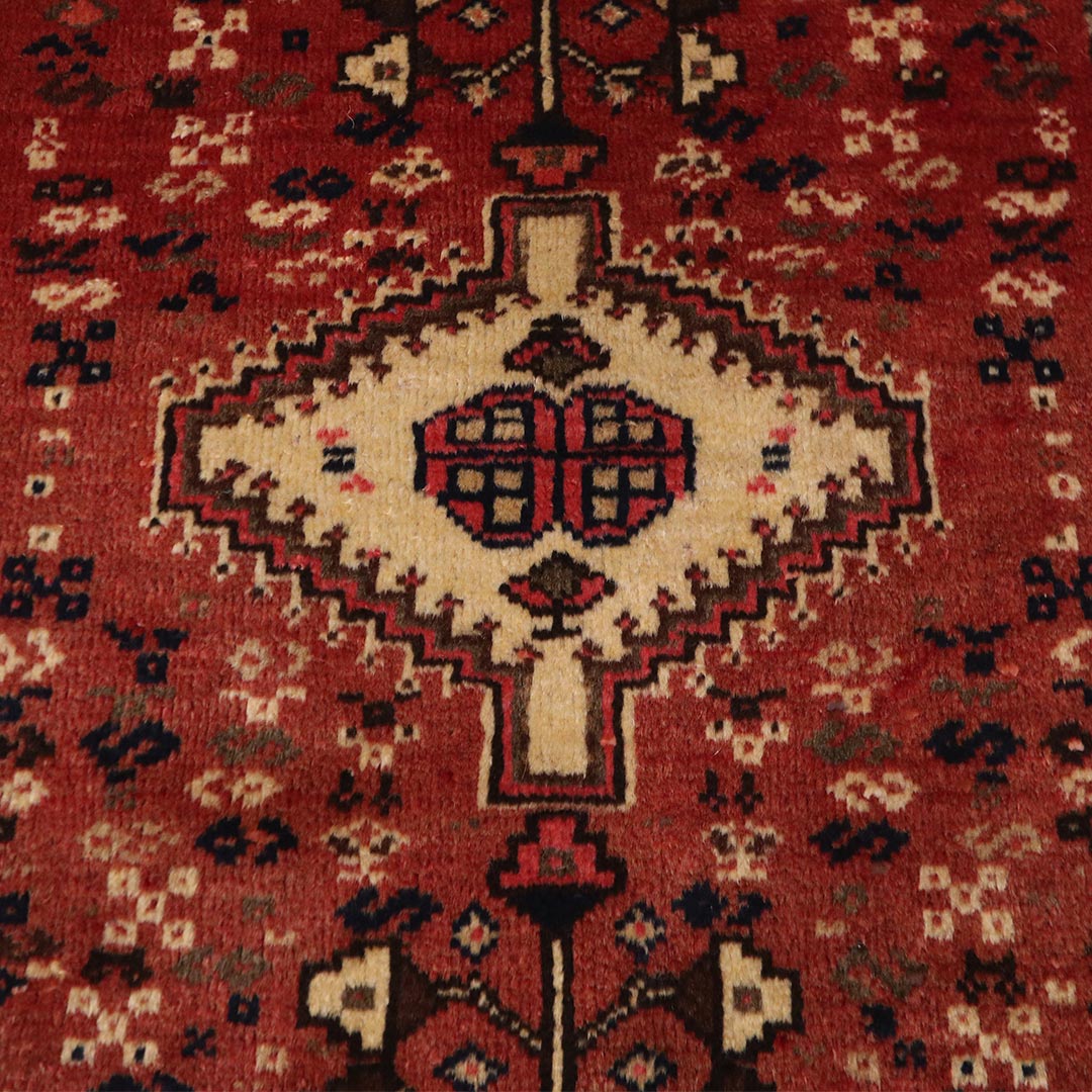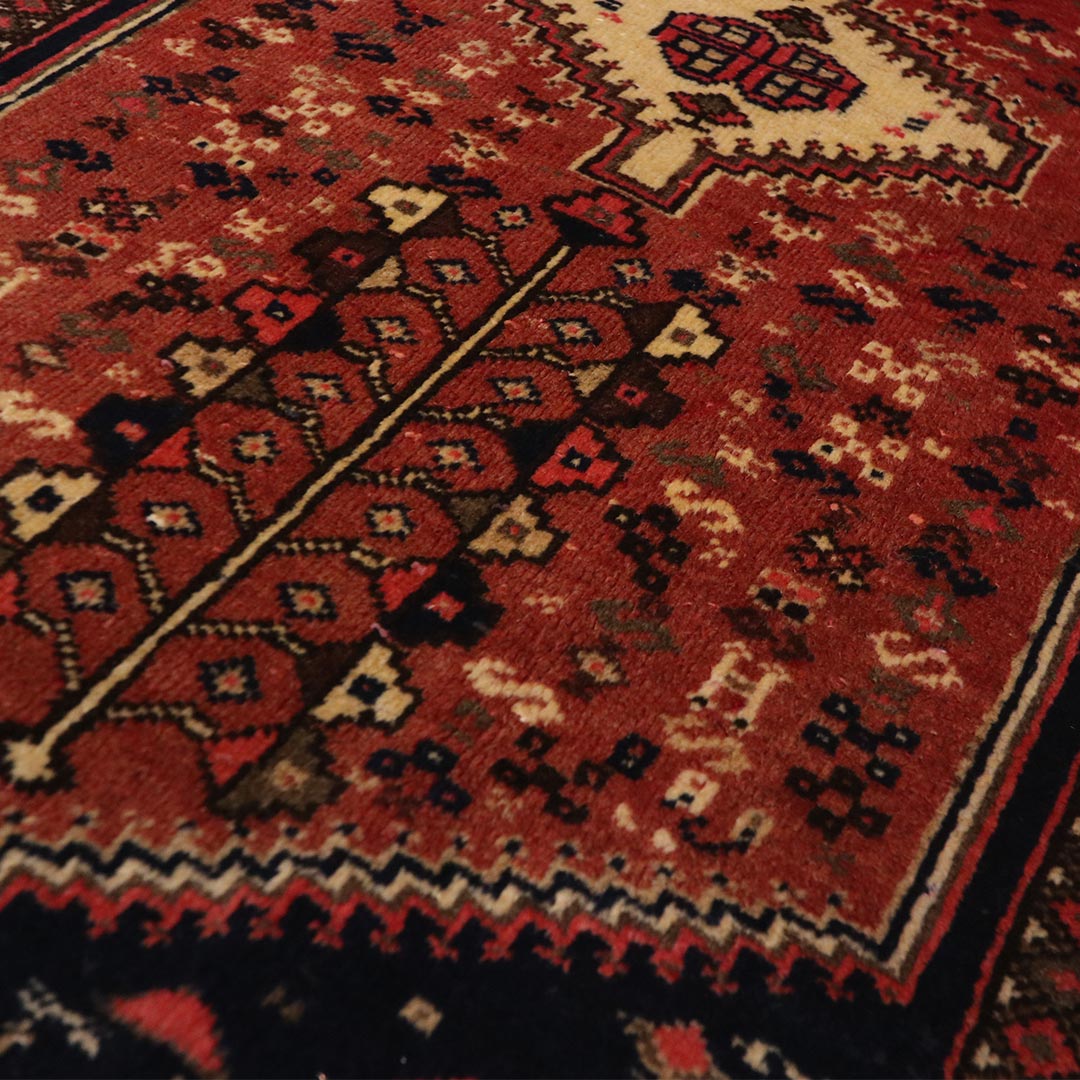 فرش پشتی آباده که از الیاف طبیعی کتان و پشم تولید شد ه است دارای مساحت 0.49 متر مربع و وزن 1.74 کیلوگرم است .