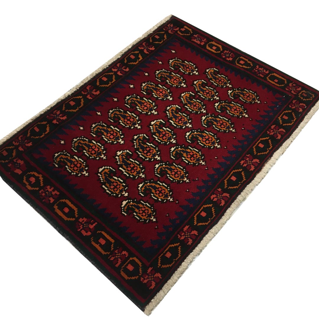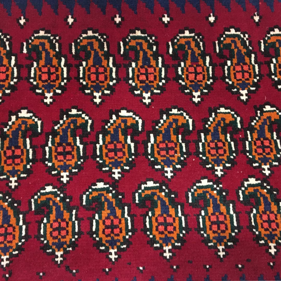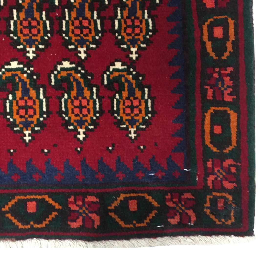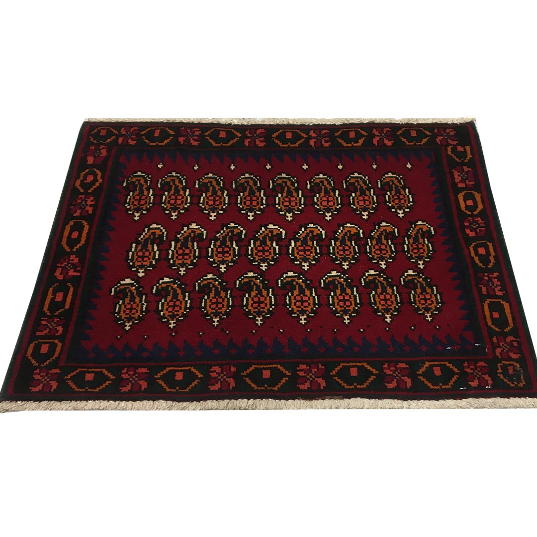 فرش دستبافت پشتی سیرجان(58×80)سانتیمتر , با طرح کلی سراسر و نقش مایه ی بوته جقه را مشاهده می فرمایید.