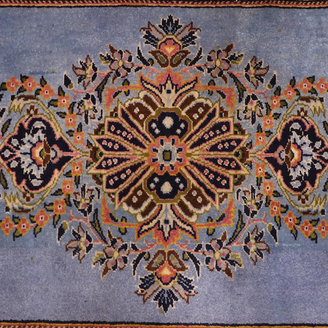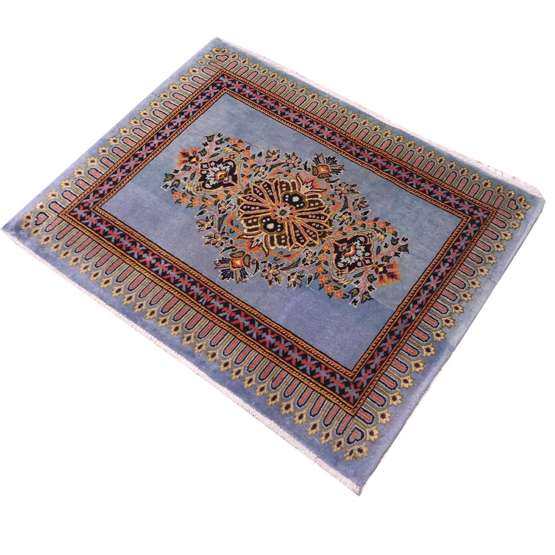 فرش پشتی محصول هنر و تلاش هنرمندان عزیز کاشانی است با رنگ زمینه آبی که بسیار خوش رنگ و خوش طرح میباشد .
