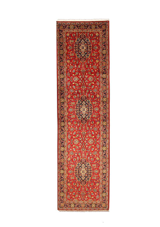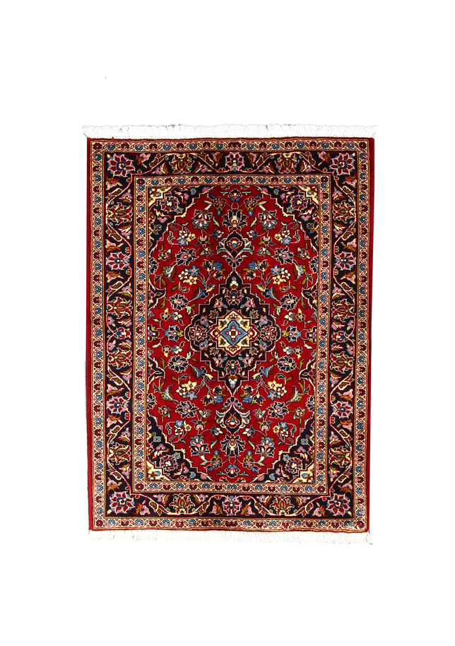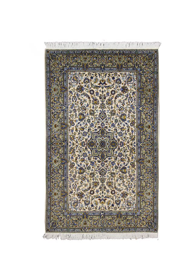در بافت این فرش کاشان از پشم و کتان طبیعی استفاده کردند.