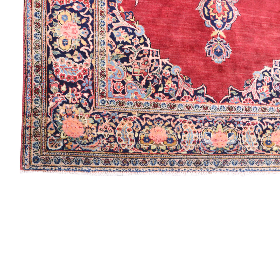 کد فرش:2423 -فرش دستبافت کاشان به شکل مستطیل ودر ابعاد: 198سانتیمترمربع و عرض:136 سانتیمترمربع در شهرستان کاشان بافته شده است،جنس چله فرش از نخ و جنس پودها از پشم میباشد ،رنگ زمینه فرش لاکی و رنگ حاشیه سورمه ای است ،رنگها گیاهی و ثابت است در اثر شستشو دچار تغییر رنگ و پس دادن و پخش شدن رنگ در فرش نمیشود،مساحت که فرش در منزل شما اشغال میکند 2.69متر مربع میباشد،ضخامت و قطر آن در حدود ۱۵میلی متر ودارای وزن ۱۰کیلوگرم است،در بافت فرش از نقوش ترنج استفاده شده و طرح خاص و بی نظیر میباشد .نحوه ی رنگرزی سنتی با استفاده از رنگهای گیاهی طبیعی و ارگانیک میباشد،و همین امر فرش را خوش رنگ و باکیفیت کرده است.