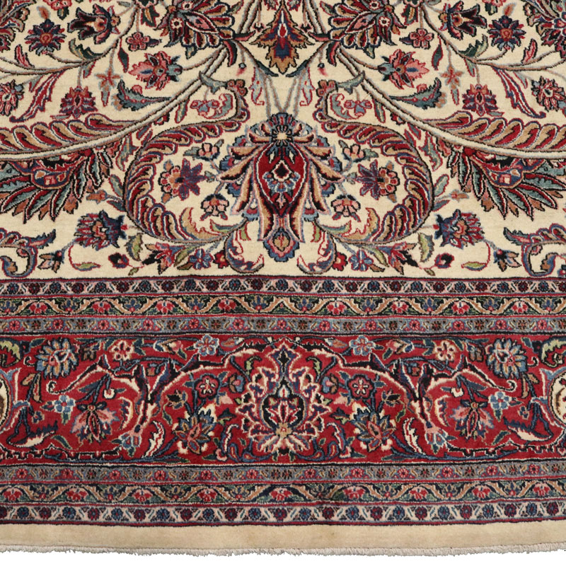 فرش دست بافت کاشمر با مساحت 6 متر مربع و وزن 32.11 کیلوگرم با  رنگ زمینه کرم و حاشیه لاکی میباشد.