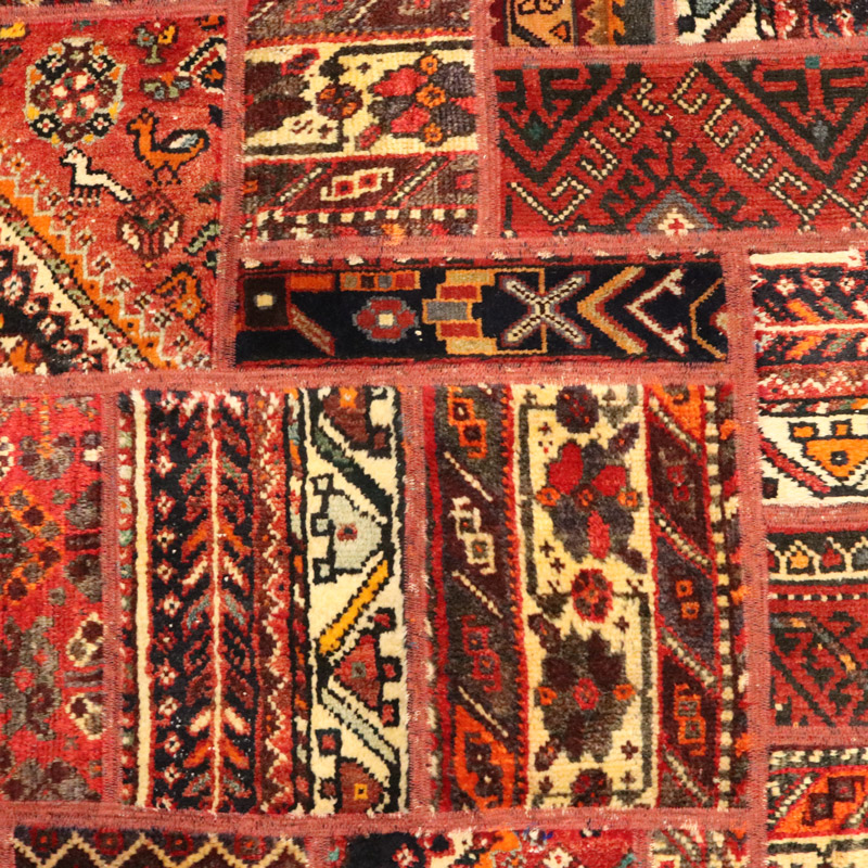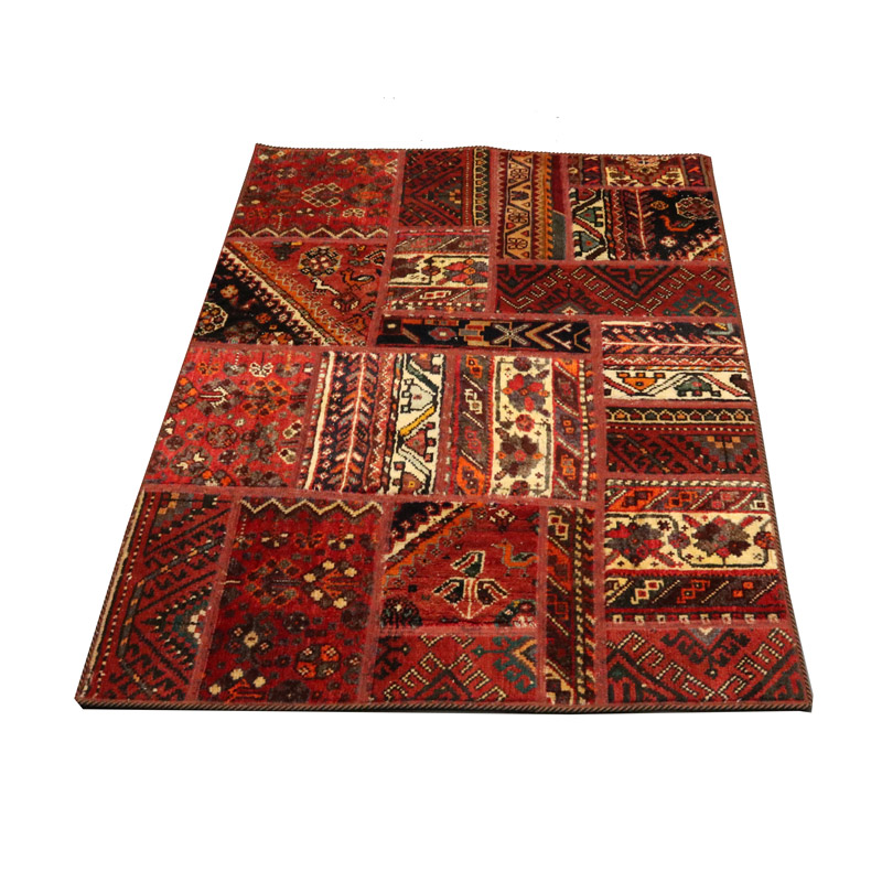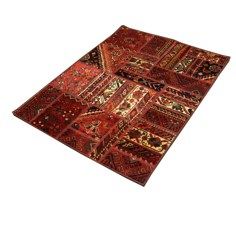فرش دستبافت کلاژ (115×154) سانتیمتر با وزن 6.2 کیلوگرم و ضخامت 1 میلیمتر و مساحت 1.7 مترمربع با رنگ زمینه لاکی است.