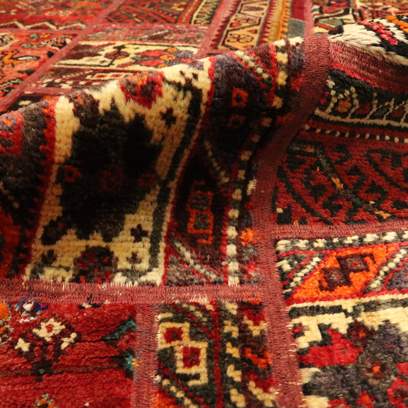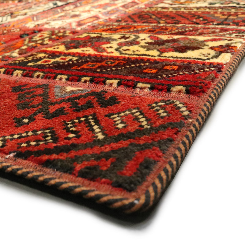 رنگ حاشیه آن لاکی و از جنس پشم و کتان خالص با مرغوبیت بالا و درجه یک با طرح هندسی قاب قابی است.