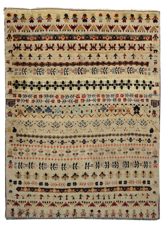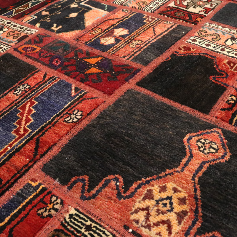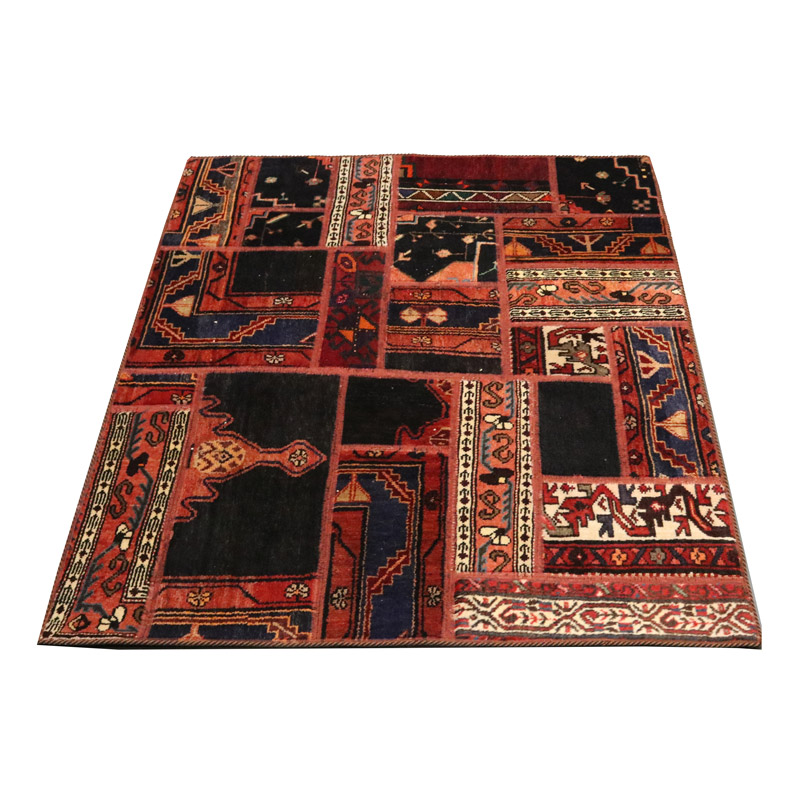 فرش دستبافت کلاژ (124×150) سانتیمتر با رنگ حاشیه الوان و زمینه الوان از جنس پشم و کتان خالص و با کیفیت عالی است.