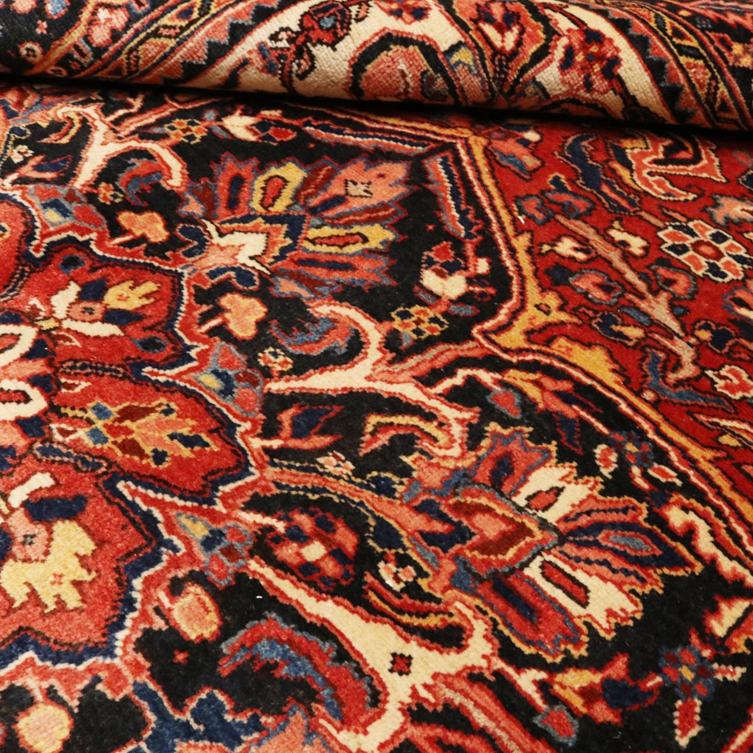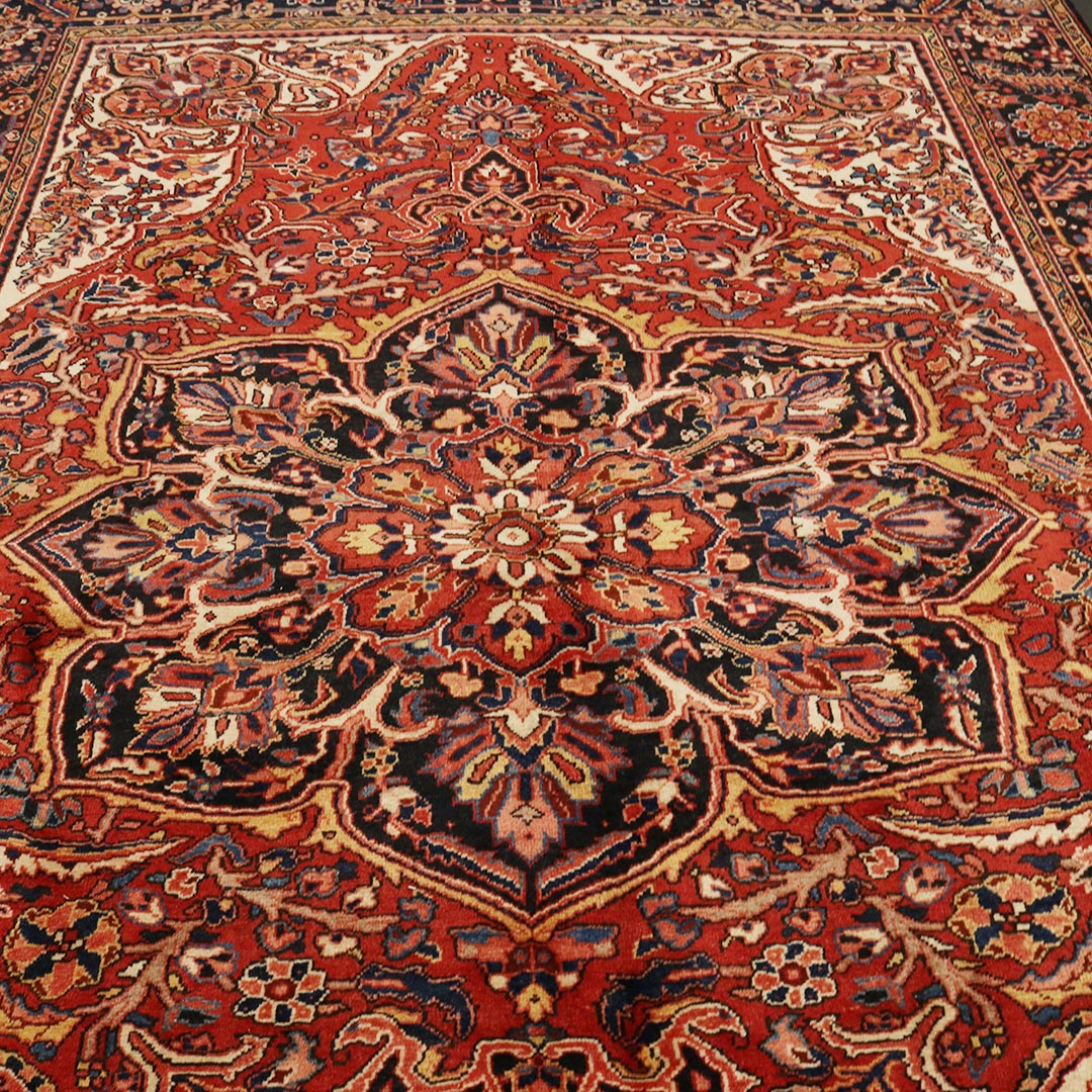 فرش دستبافت گروان هریسی که تصاویر ان را مشاهده میفرمایید از زوایای مختلف یک فرش تقریبا 9 متری است و رنگ زمینه ان لاکی است.