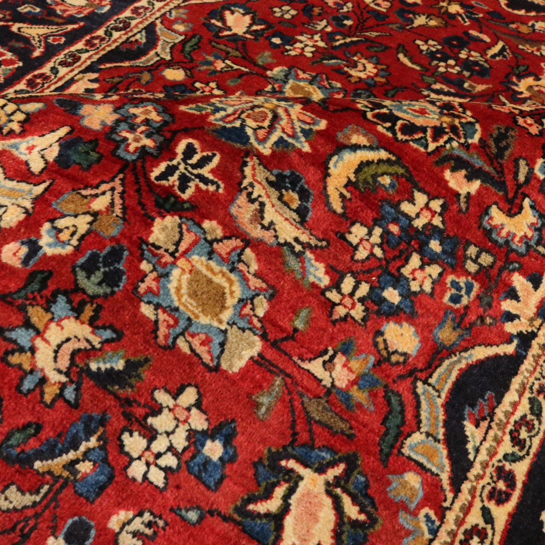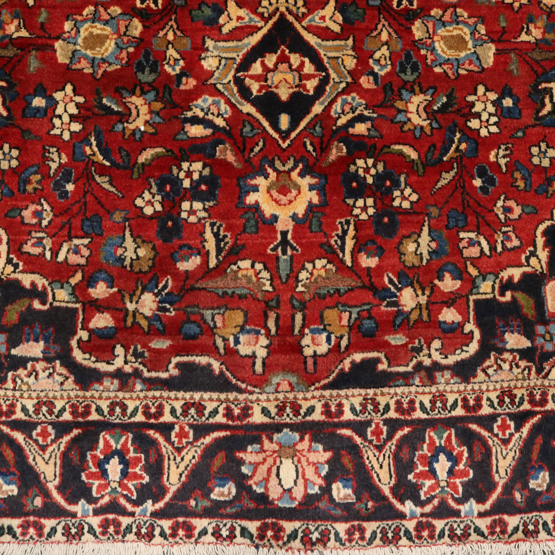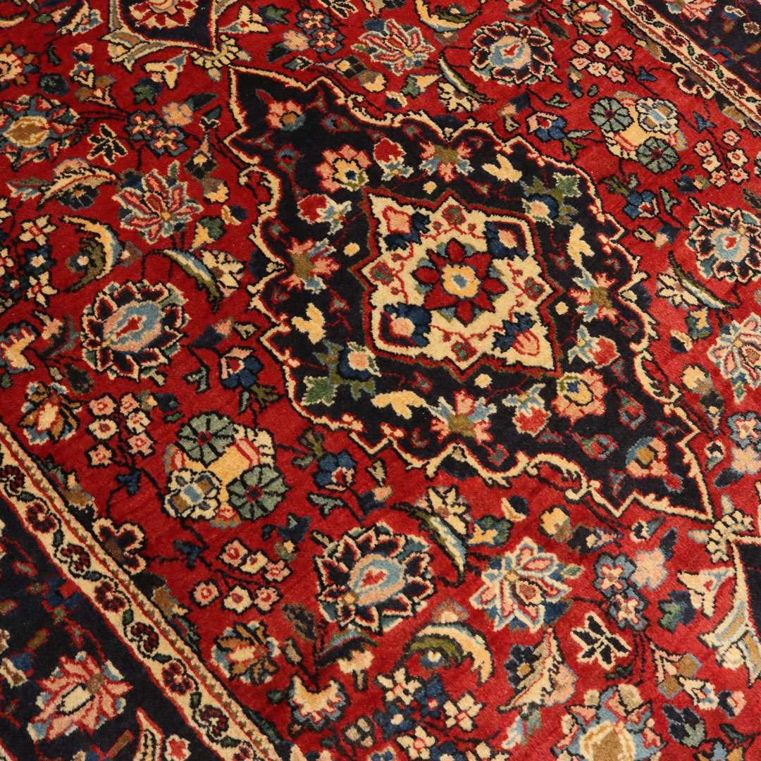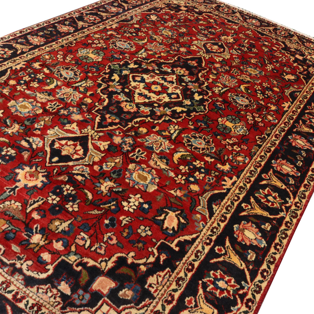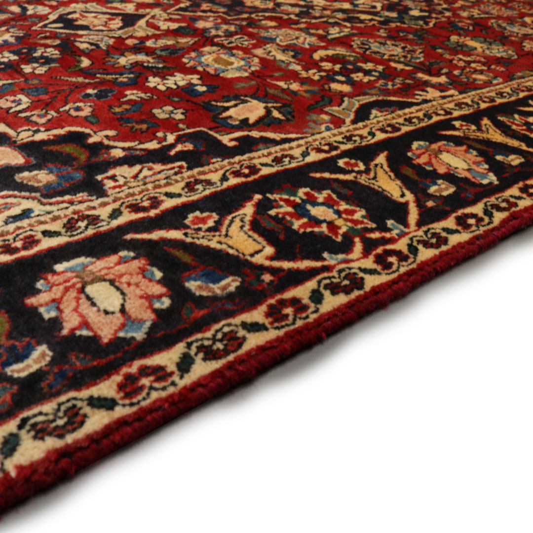 قالیچه دست بافت دست بافت آران به شکل مستطیل با رنگ زمینه قرمز و طرح لچک ترنج میباشد.
