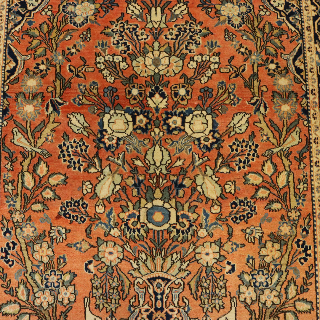قالیچه ی دست بافت آران کاشان را مشاهده میفرمایید که مساحت حدود 2.93 متر مربع و وزن 10.2 کیلوگرم با زمینه لاکی رنگ