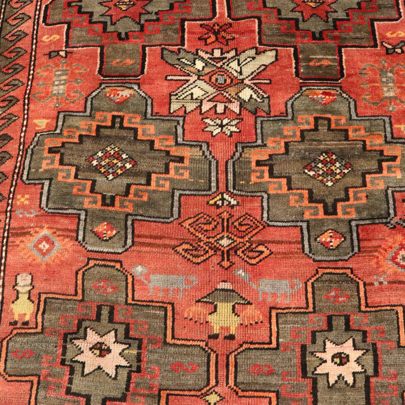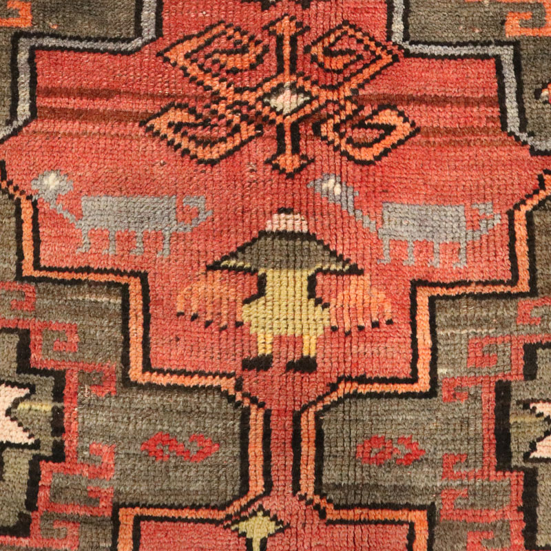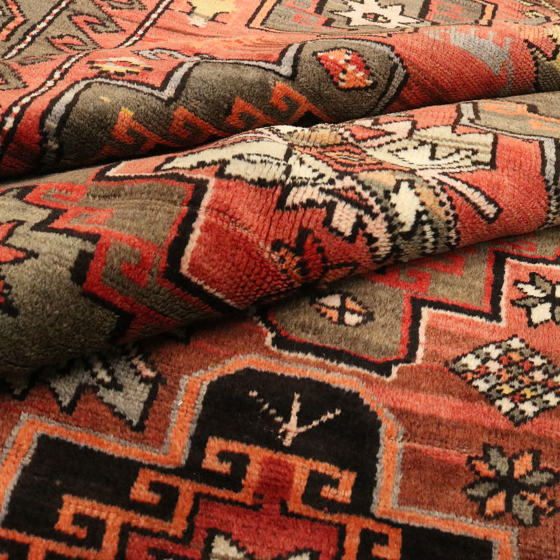در بافت این قالیچه دست بافت آنتیک روسی از پشم و کتان طبیعی بافتع شد ه است.