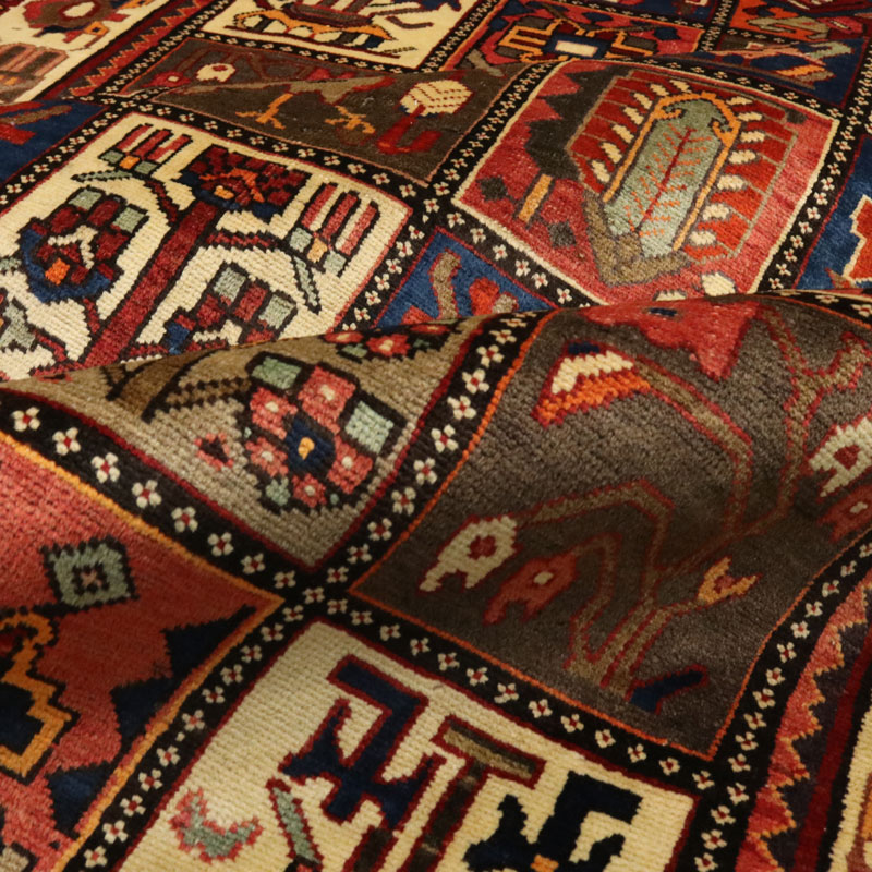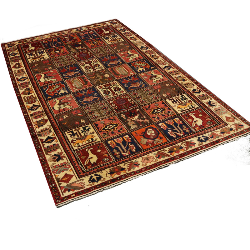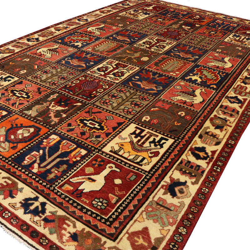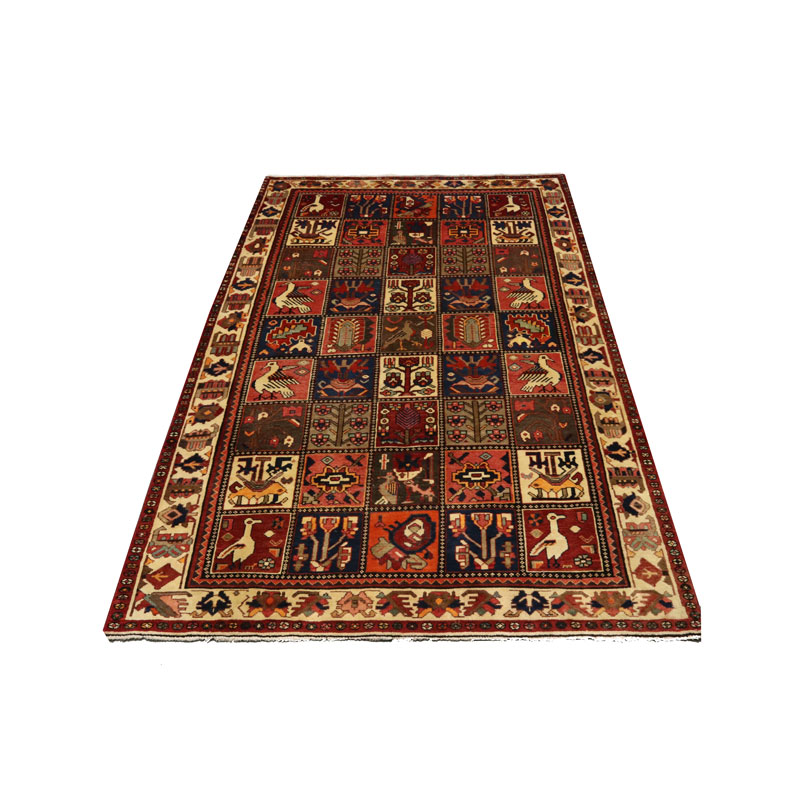 قالیچه ی دست بافت بختیار به ابعاد مستطیل شکل و مساحت 4 متر مربع و وزن 14.14 کیلوگرم بسیار مرغوب و با کیفیت است.