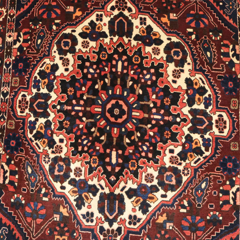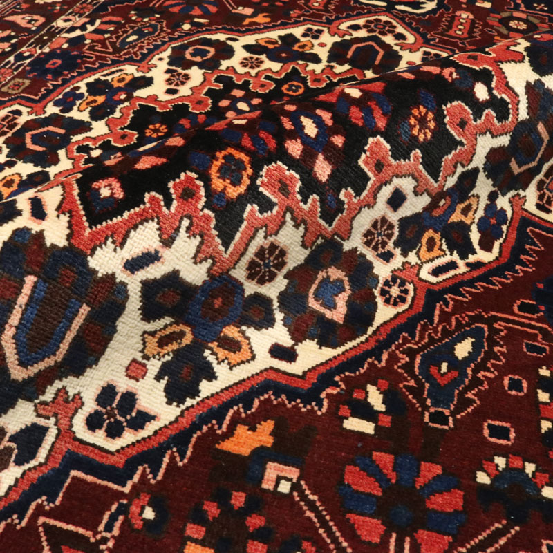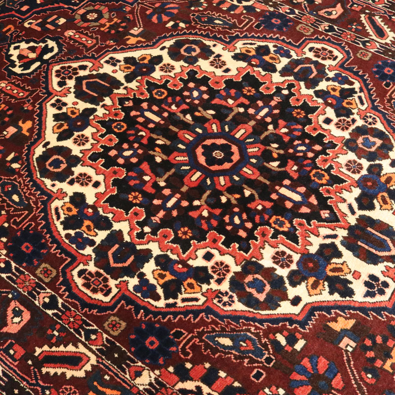 قالیچه دست بافت بختیار به وزن 14.44 کیلوگرم و مساحت 4.12 متر مربع به شکل مستطیل است .
