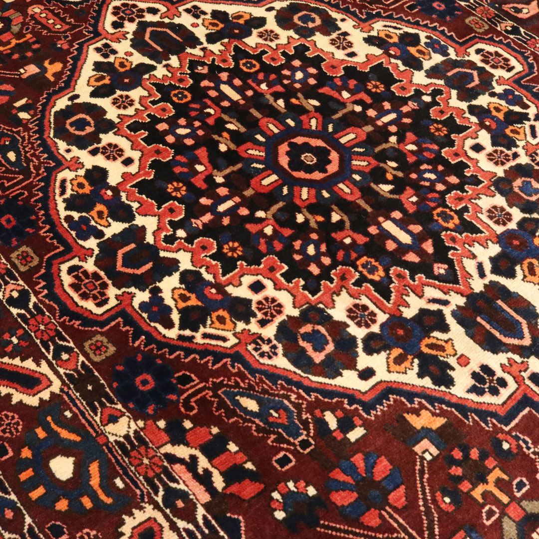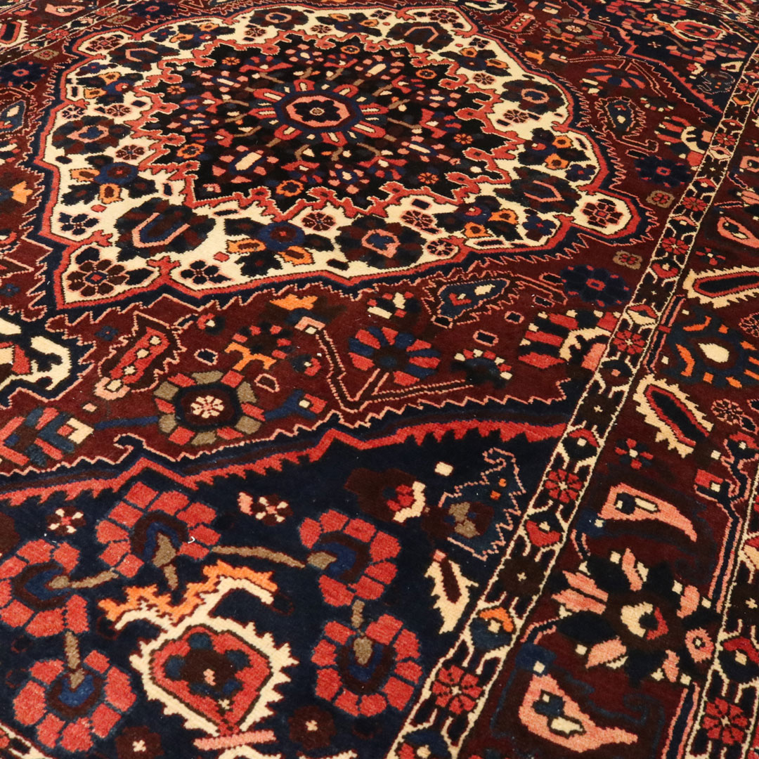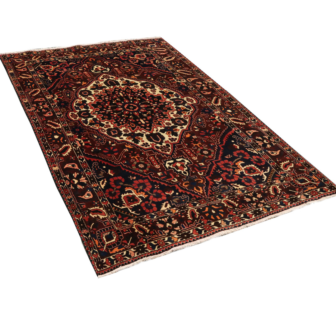 قالیچه دست بافت بختیار با مساحت 4.12 متر مربع و وزن 14.44 کیلوگرم که در بافت آن از پشم و کتان طبیعی استفاده کردند.