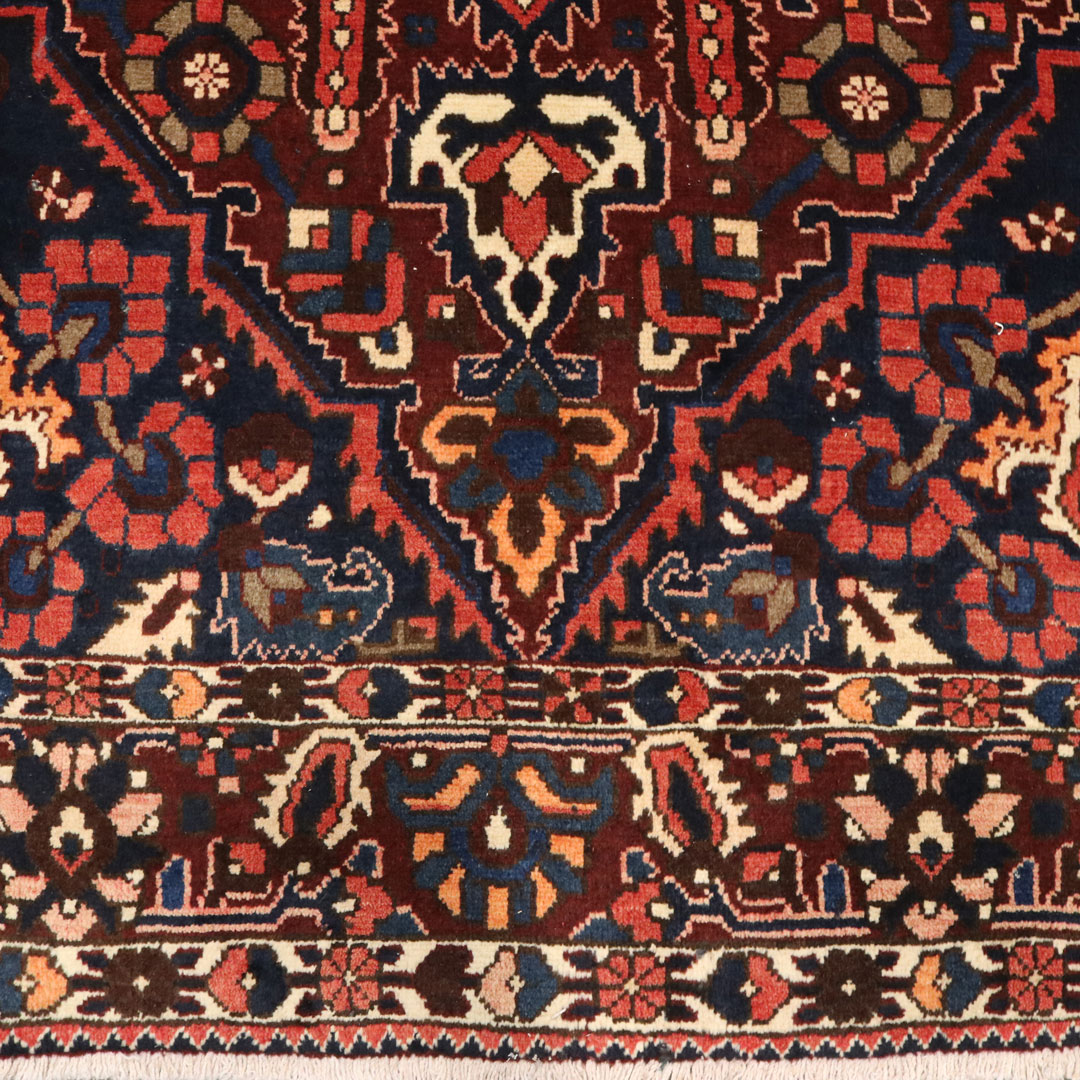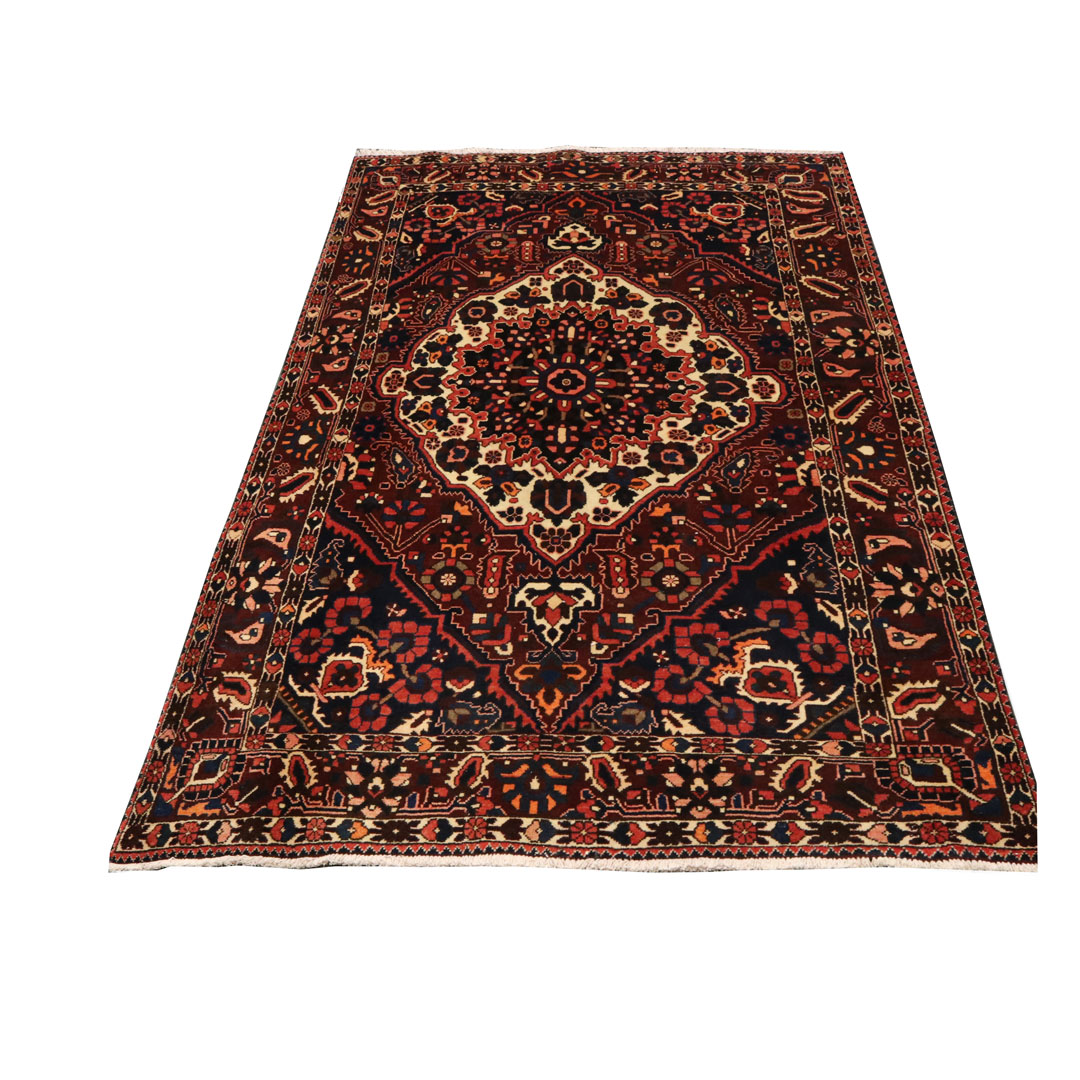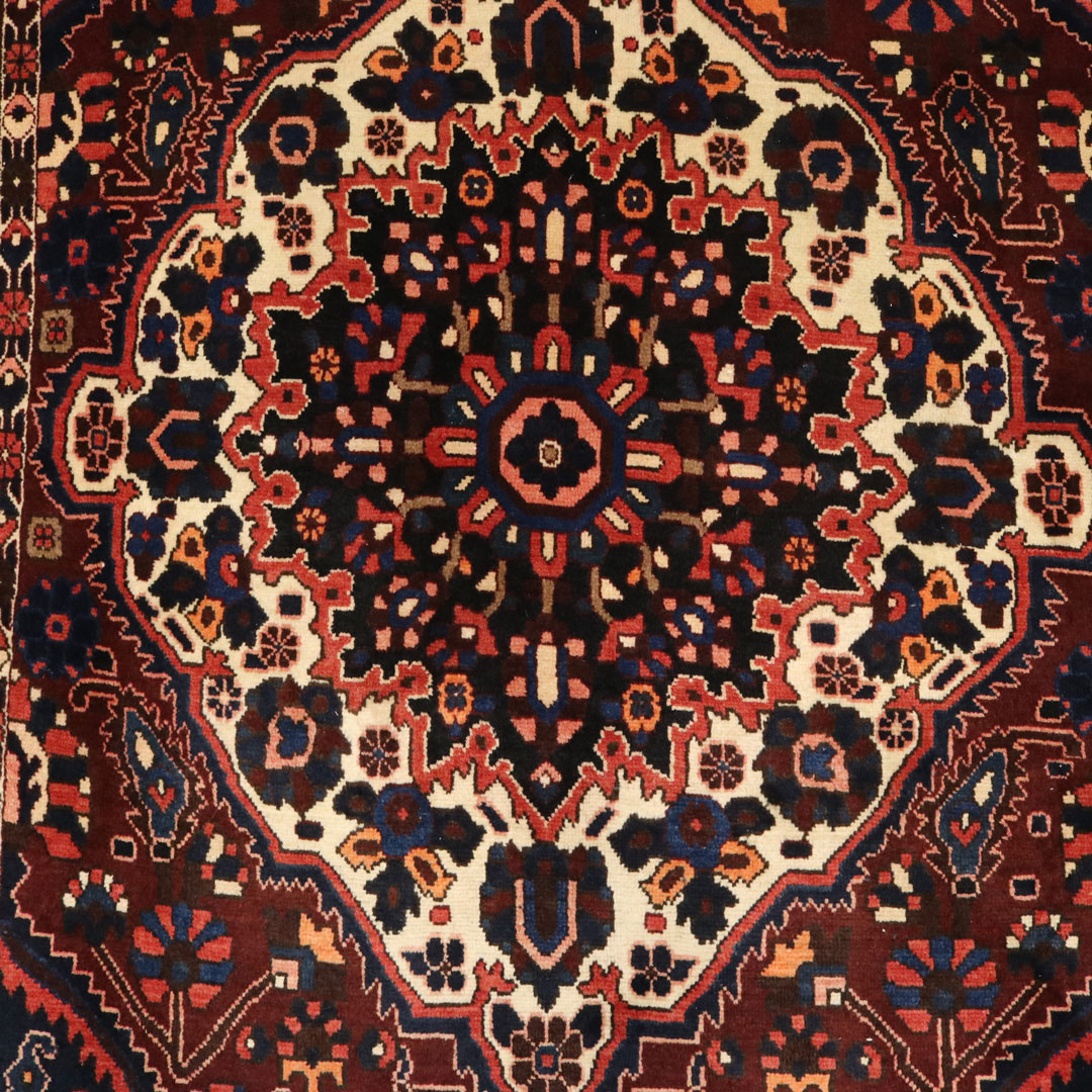قالیچه دست بافت بختیار با مساحت 4.12 متر مربع و وزن 14.44 کیلوگرم که در بافت آن از پشم و کتان طبیعی استفاده کردند.