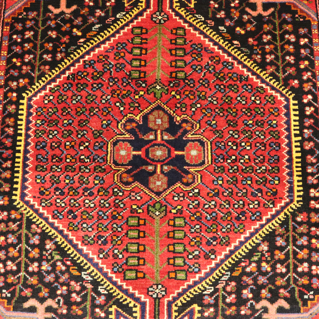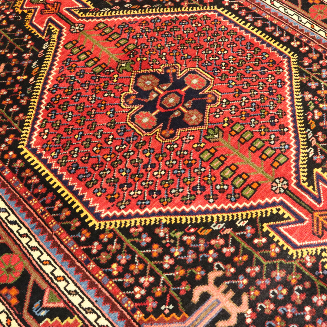 قالیچه ی دست بافت توسرکان با طرح لچک ترنج و زمینه تیره با مساحت 3.2 متر مربع و وزن 11.46 کیلوگرم را مشاهده میفرمایید.