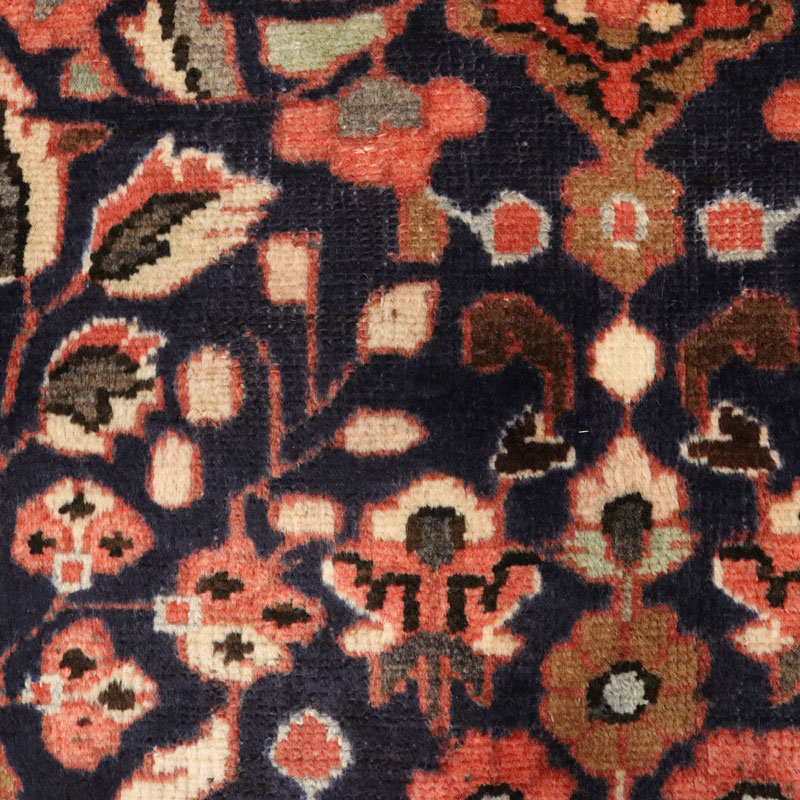 قالیچه دست بافت جوزان ملایر با ضخامت استاندارد و مساحت 3.5 متر مربع و وزن 12.43 کیلوگرم که در بافت آن پشم و کتان بکاربردند.