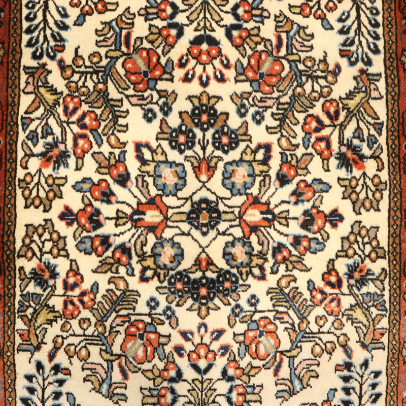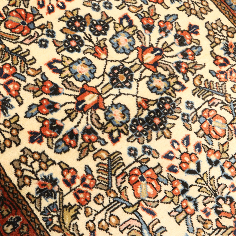 قالیچه دست بافت ساروق به شکل مستطیل و با وزن 6 کیلوگرم و مساحت 1.7 متر مربع است.