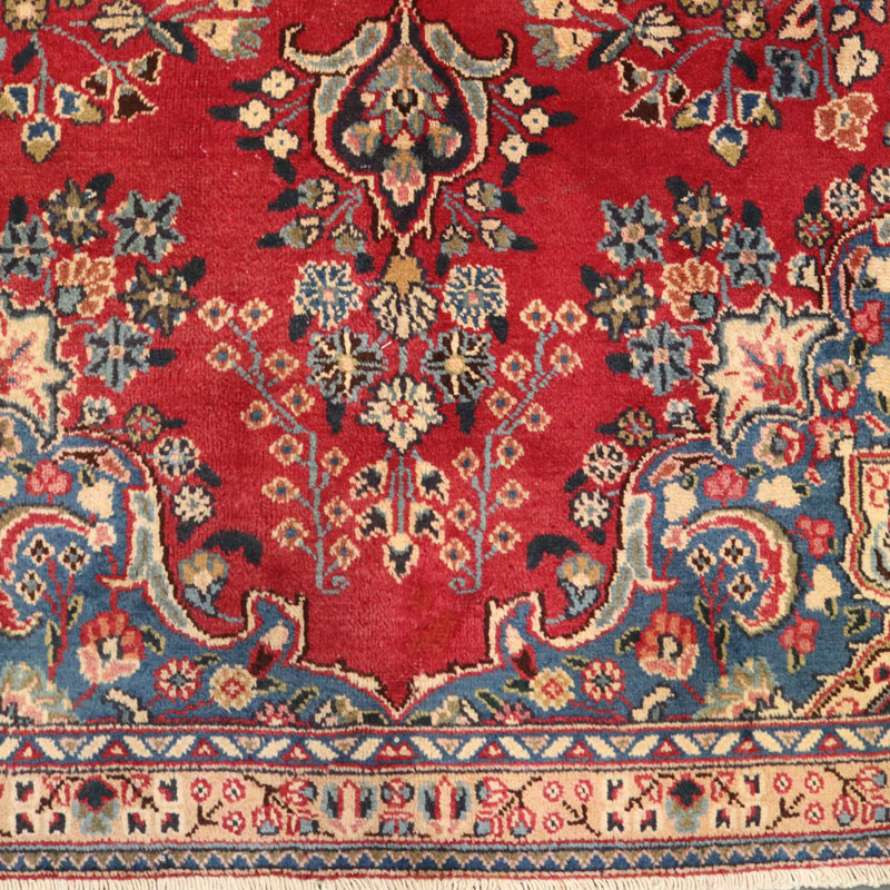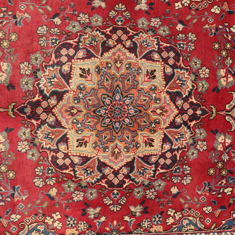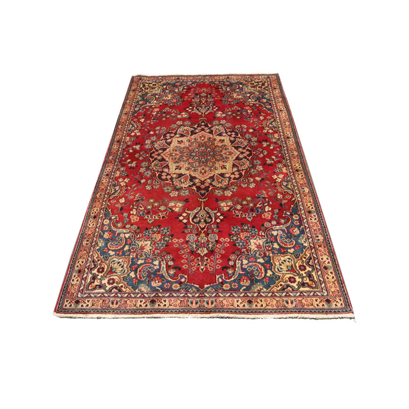 رنگ زمینه قالیچه لاکی و به طرح لچک ترنج بافتع شد ه است .