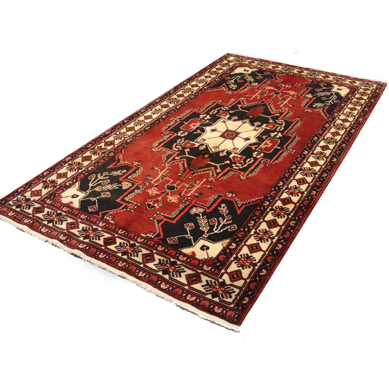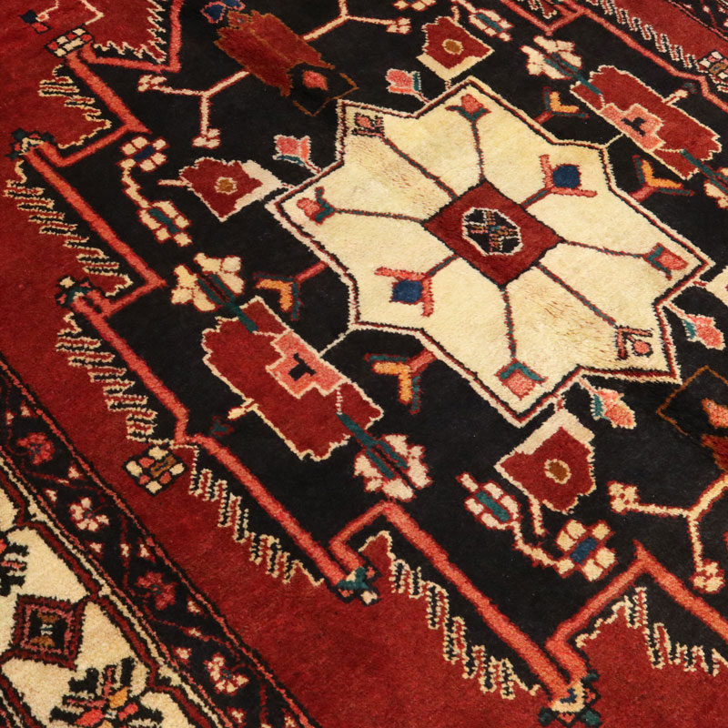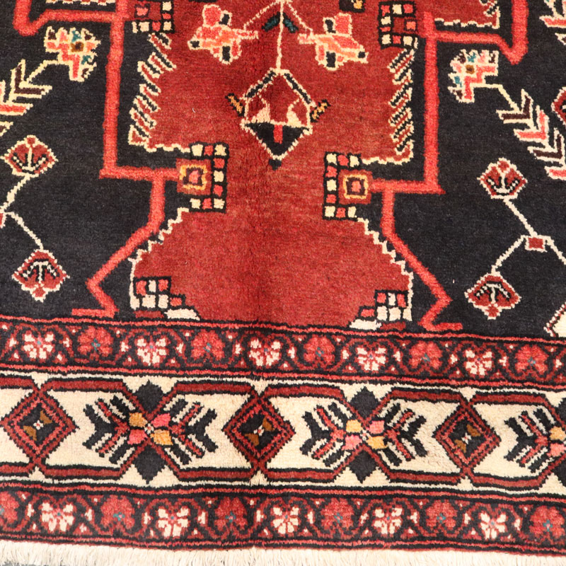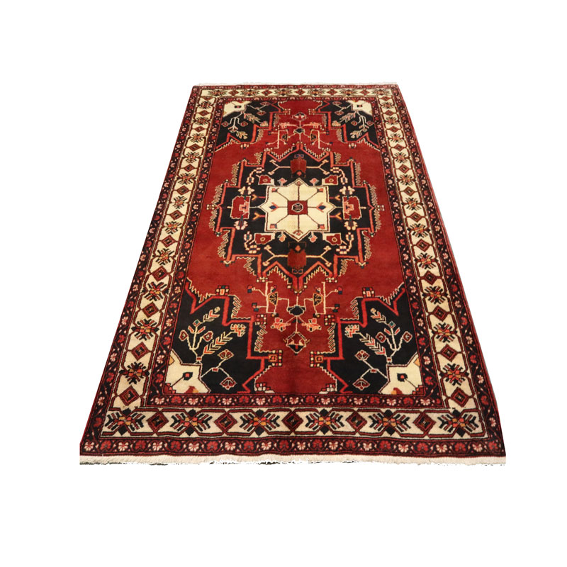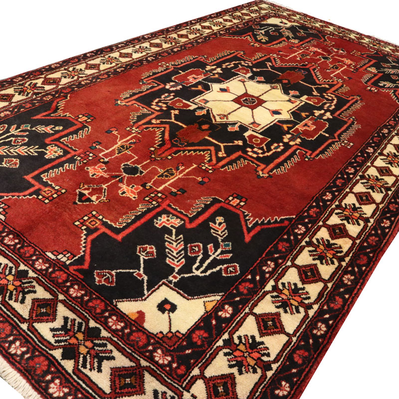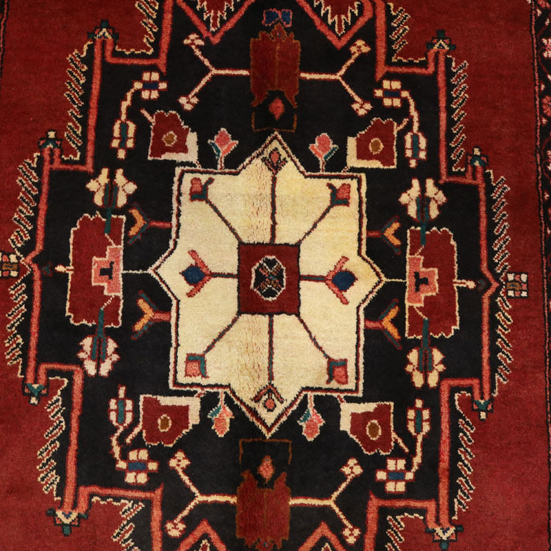 این قالیچه دارای زمینه لاکی یا قرمز است و با طرح لچک ترنج بافتع شد ه است . جنس قالیچه تماما از پشم و کتان طبیعی و محلی است .