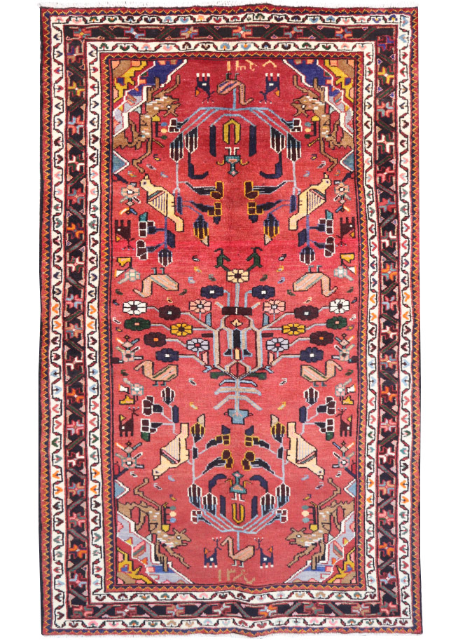 قالیچه دسبافت قشقایی که تماما از پشم خالص و طبیعی است و دارای مساحت 5.18 متر مربع با وزن 18.16 کیلوگرم است.