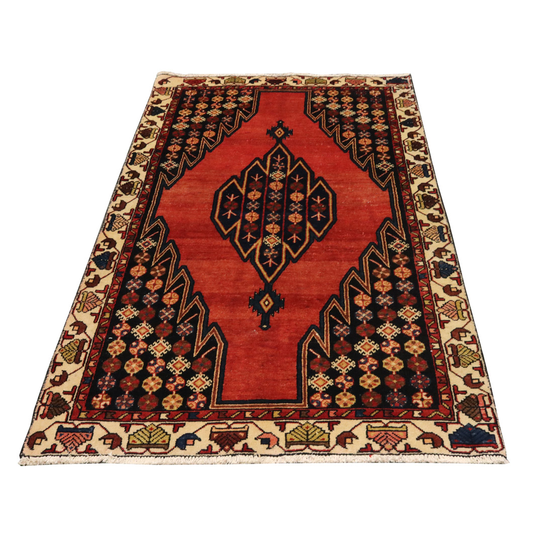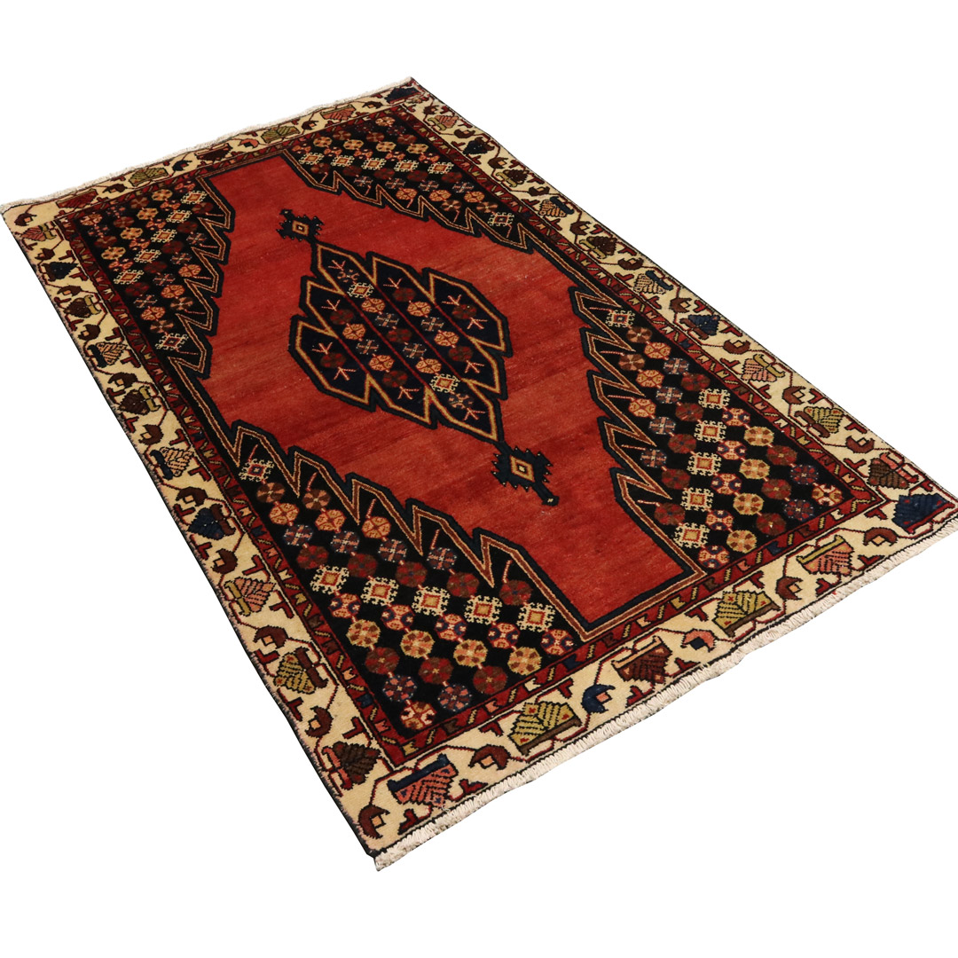قالیچه ی مرغوب و باکیفیت بافت شهرستان مزلقان با طرح لچک ترنج و وزن 8.3 کیلوگرم و مساحت 2.37 متر مربع میباشد.