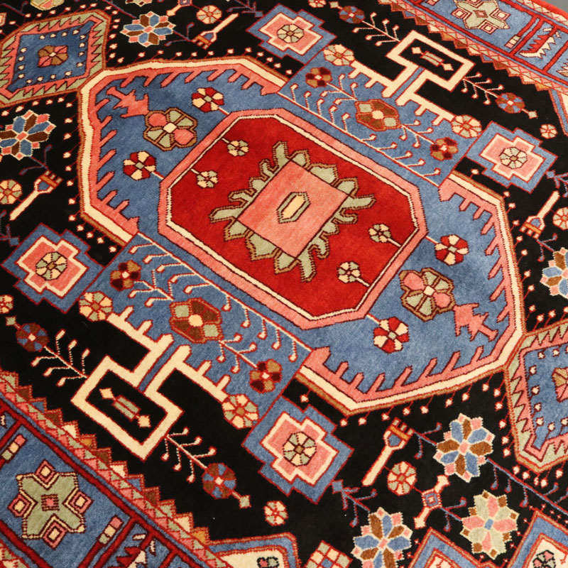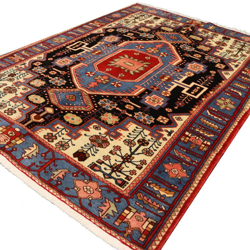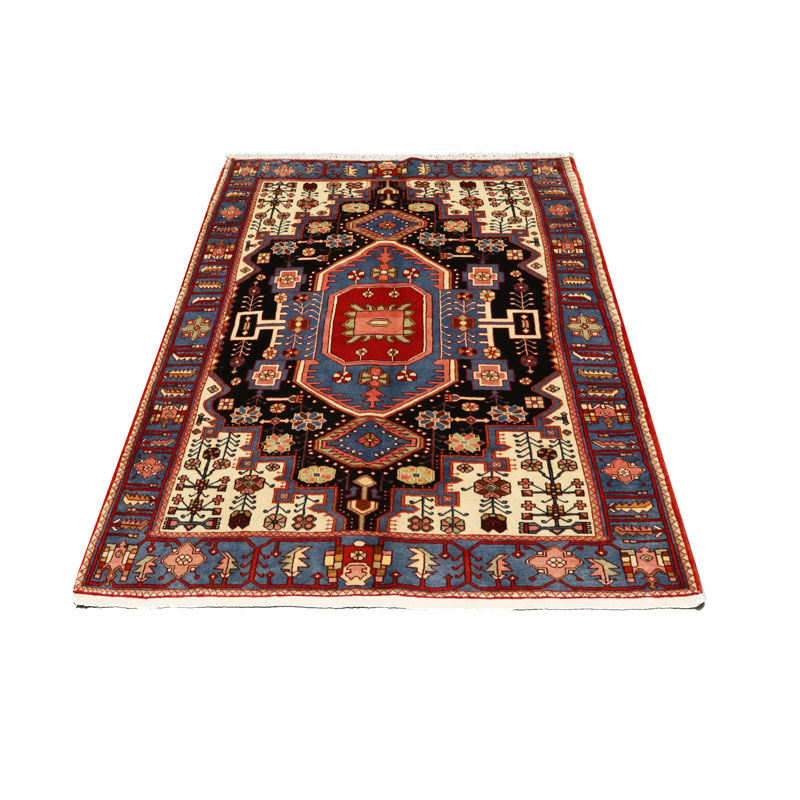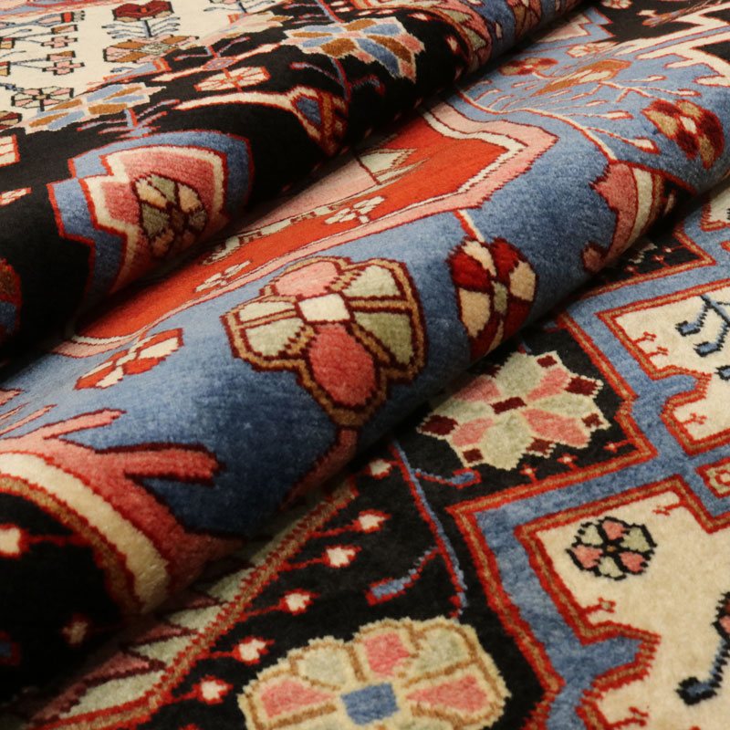 یک قالیچه دست بافت نهاوند به شکل مستطیلی را از زوایای مختلف مشاهده میفرمایید.