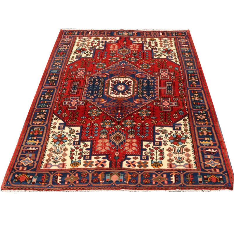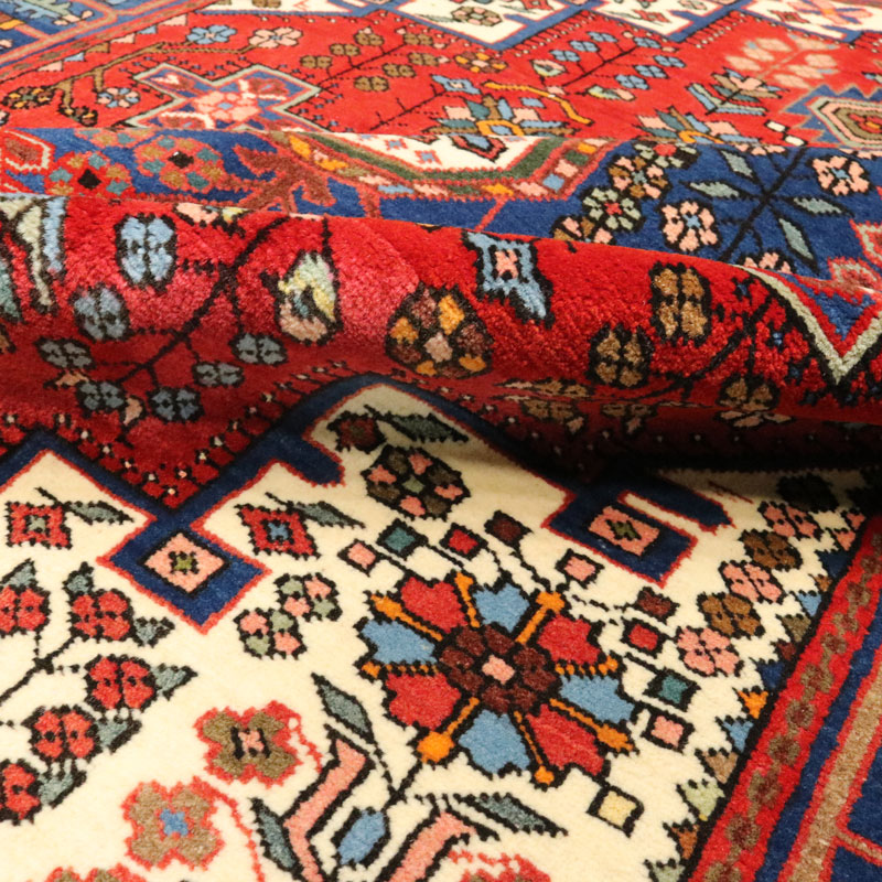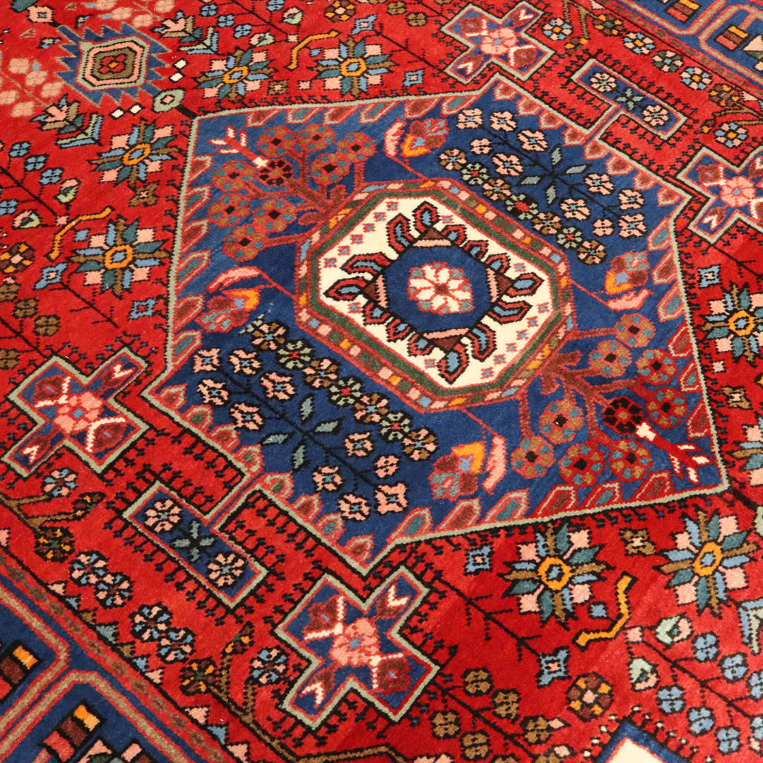 قالیچه دست بافت نهاوند با زمینه قرمز و مساحت 2.78 متر مربع و وزن 9.74 کیلوگرم را مشاهده میفرمایید.