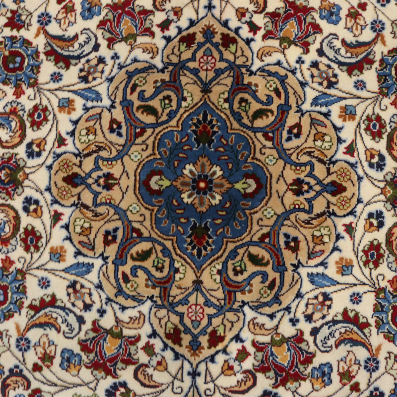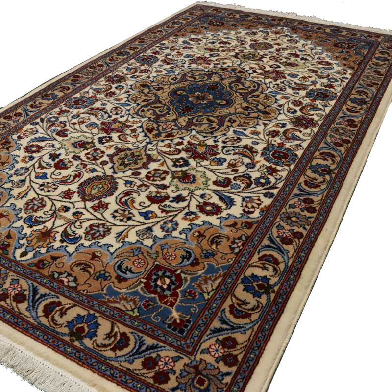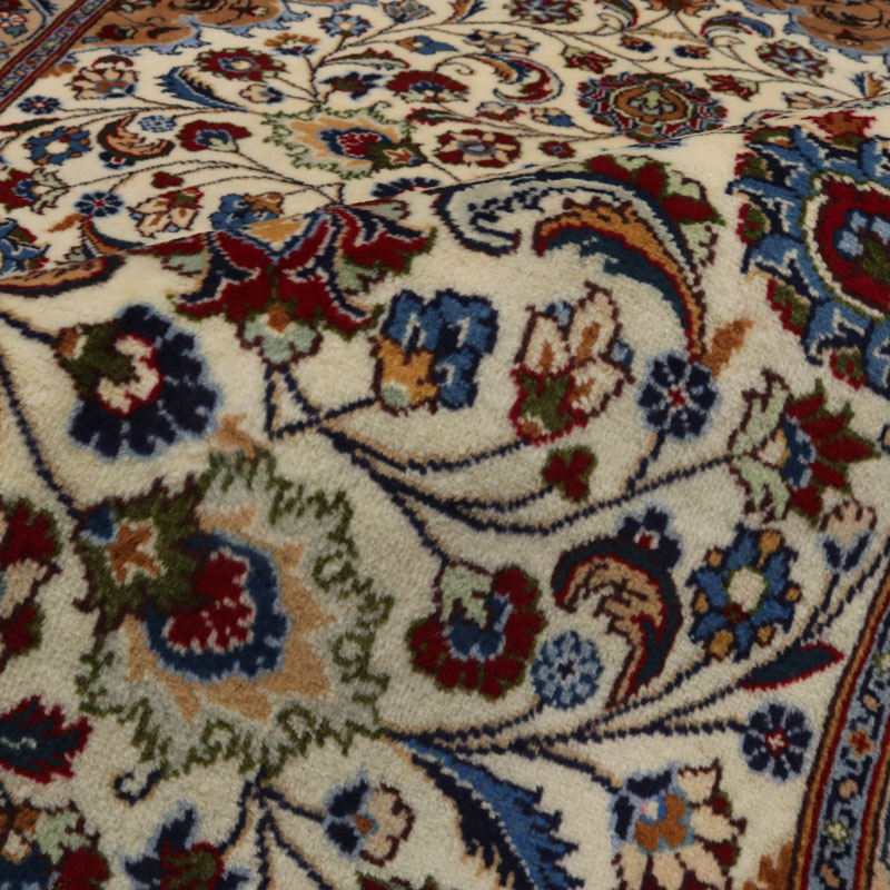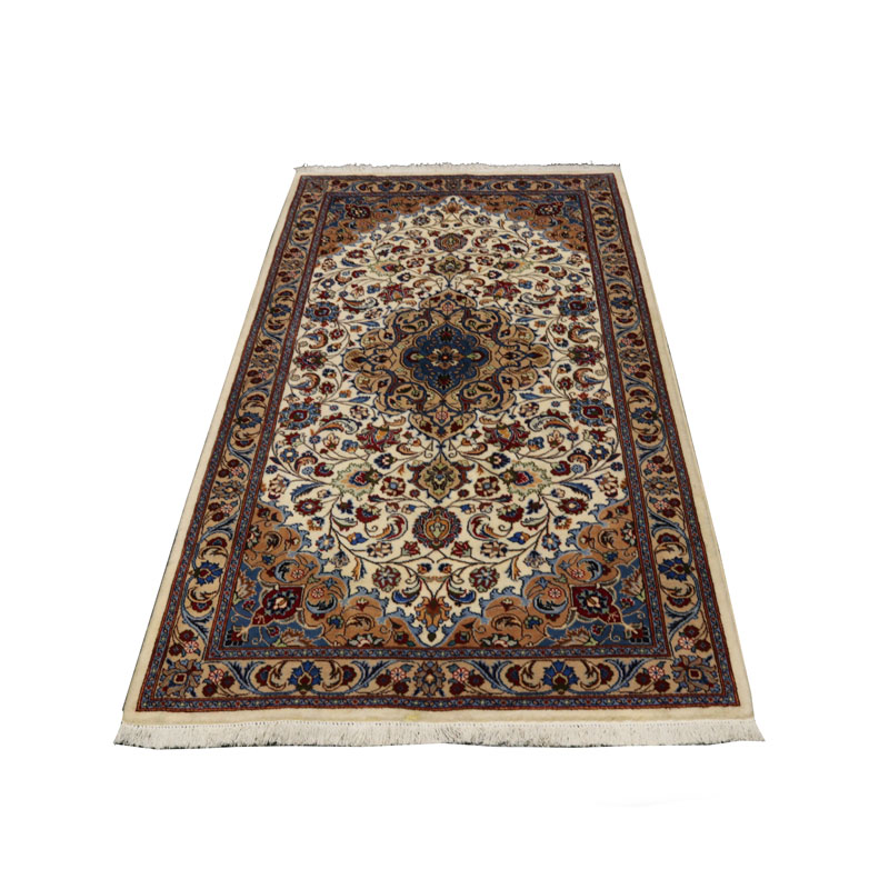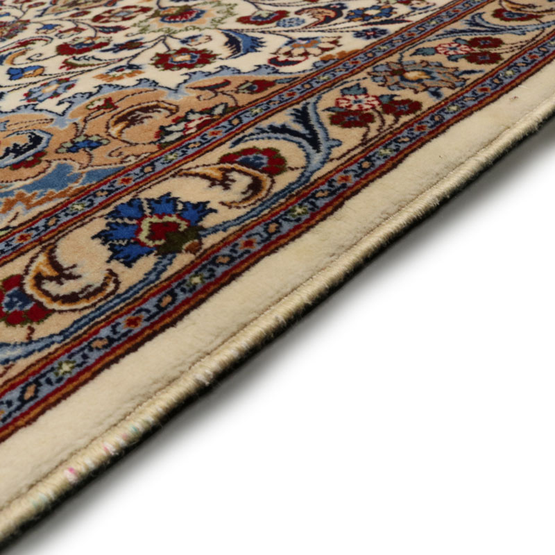 رنگ زمینه قالیچه نخودی و رنگ حاشیه آن کرم میباشد.