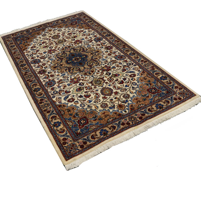 قالیچه دست بافت کاشمر با طرح لچک ترنج اسلیمی و مساحت 2.5 متر مربع و وزن تقریبا 9 کیلوگرم میباشد.