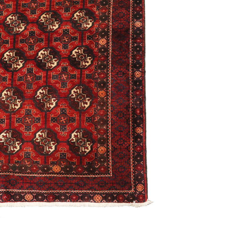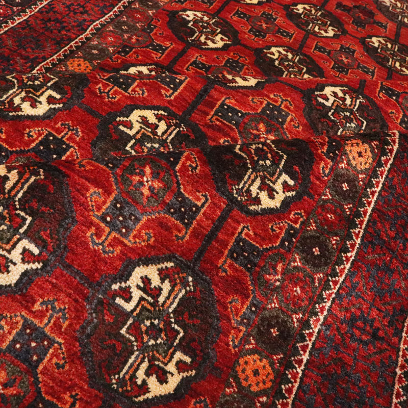 قالیچه دستبافت کردی قوچان با زمینه قرمز و طرح هندسی سراسر با کیفیت بالا و درجه یک میباشد.