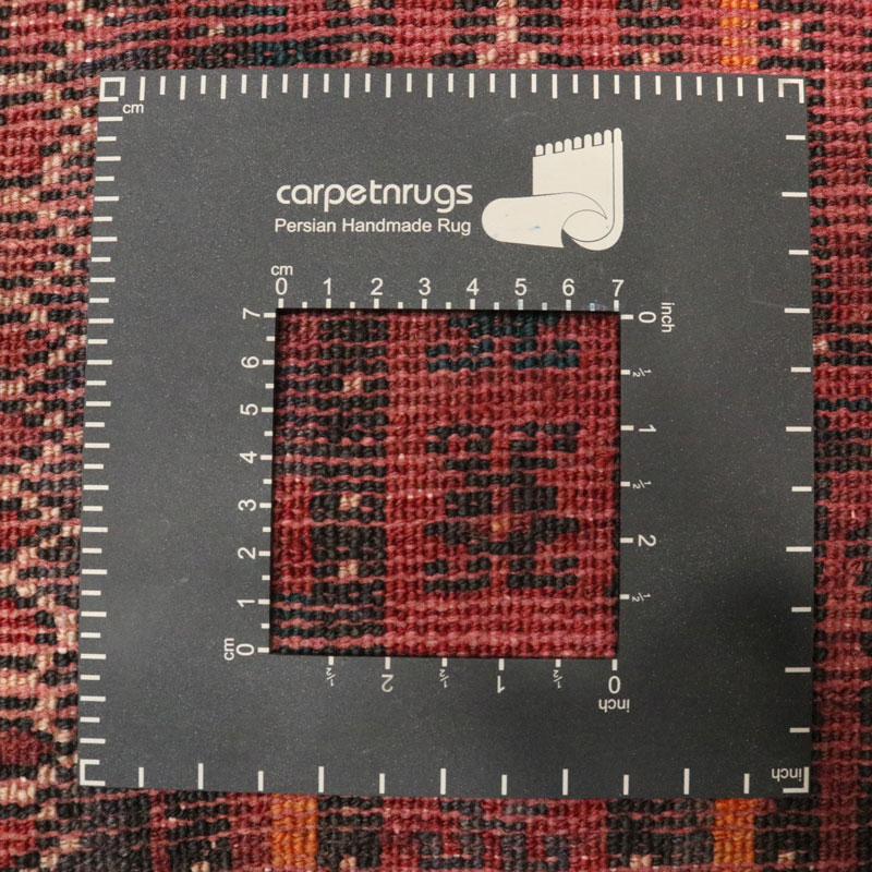 مساحت این قالیچه 5 متر مربع با وزن 17.7 کیلوگرم با رنگ زمینه لاکی و طرح هندسی سراسر میباشد.