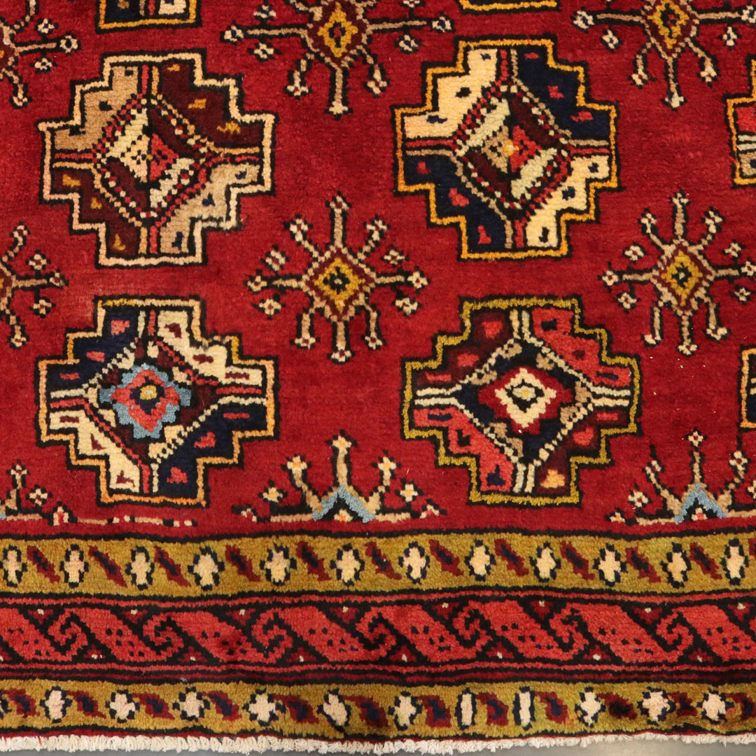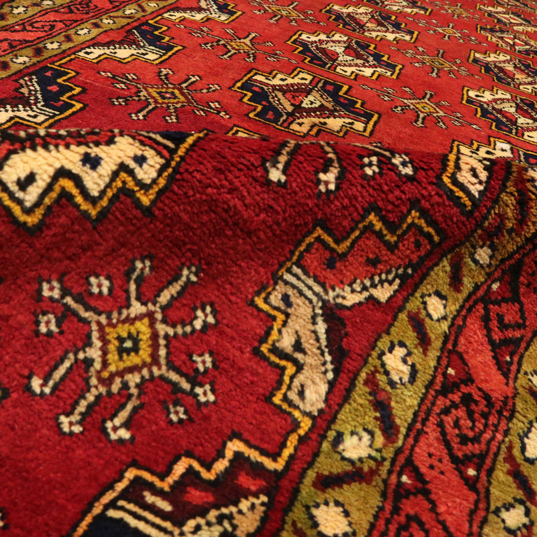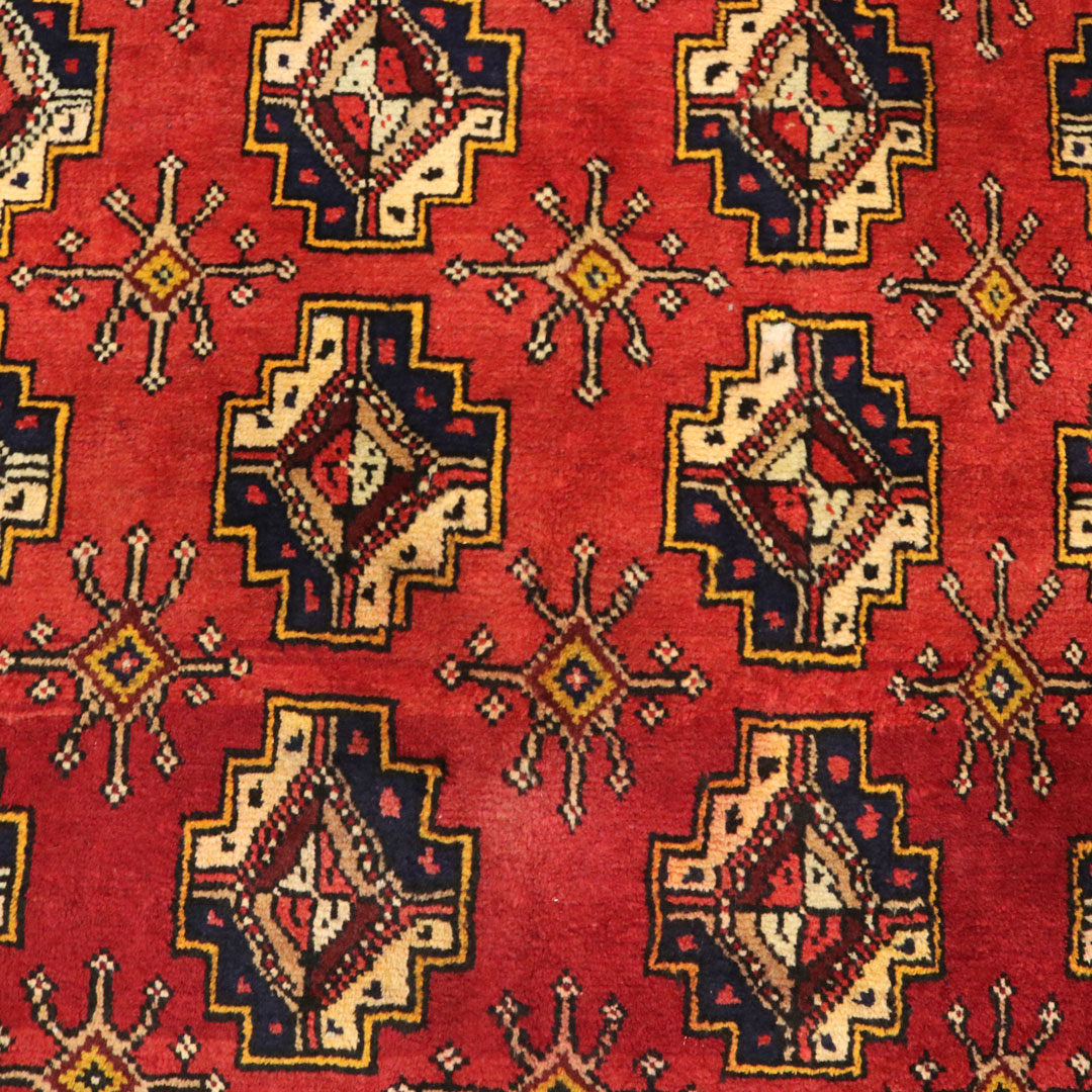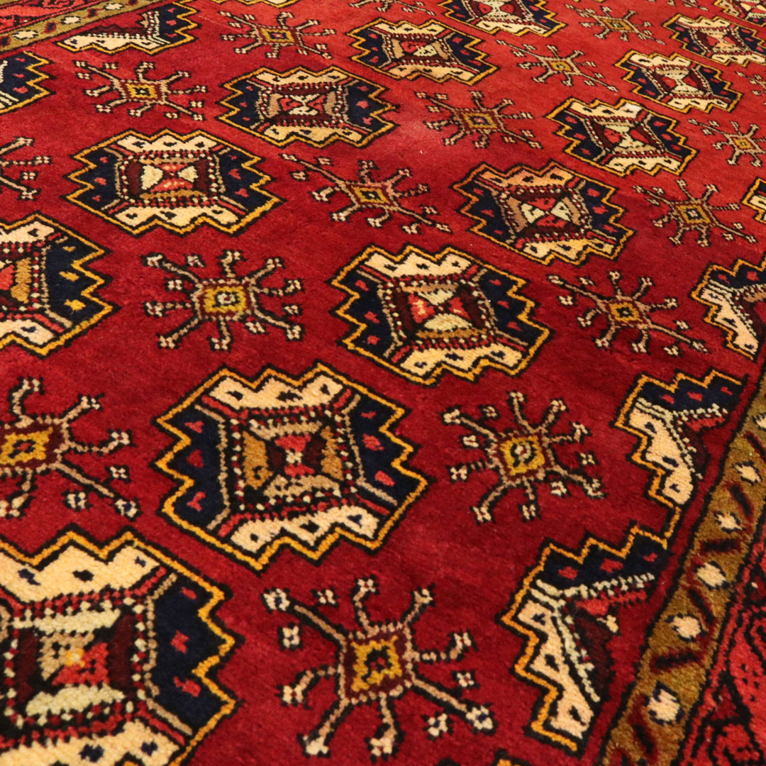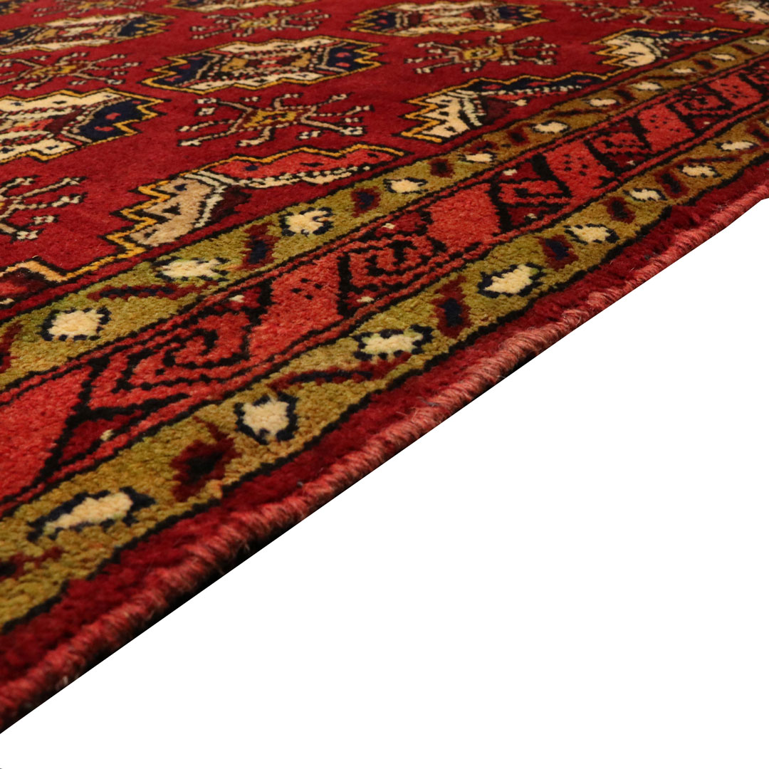 قالیچه با رنگ زمینه قرمز یا لاکی به شکل مستطیل به مساحت 3.39 متر مربع و وزن 11.87 کیلوگرم میباشد.