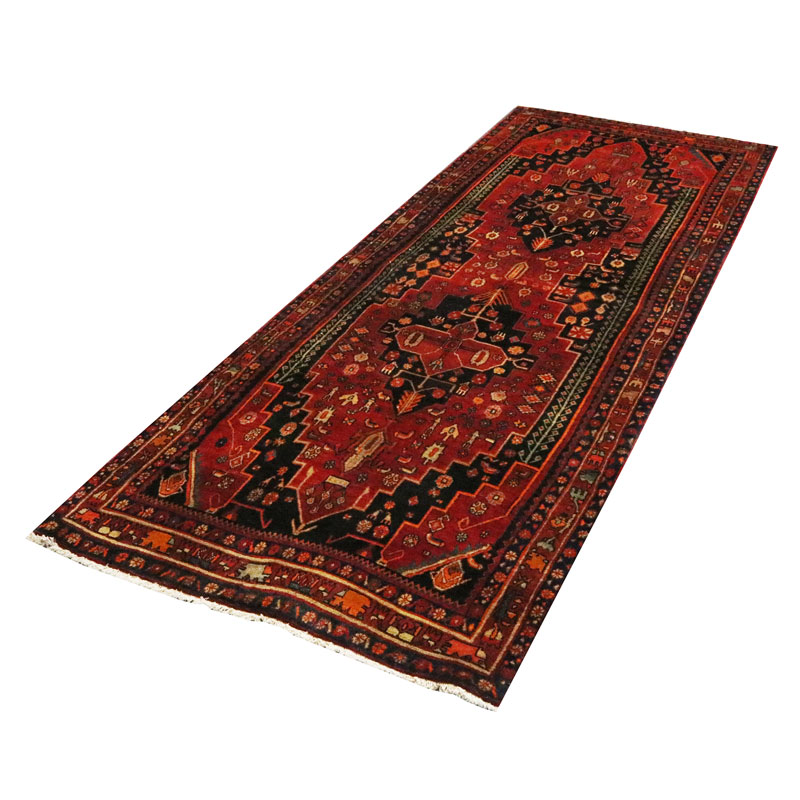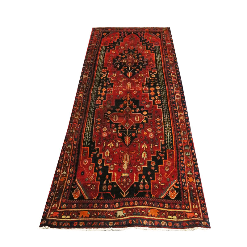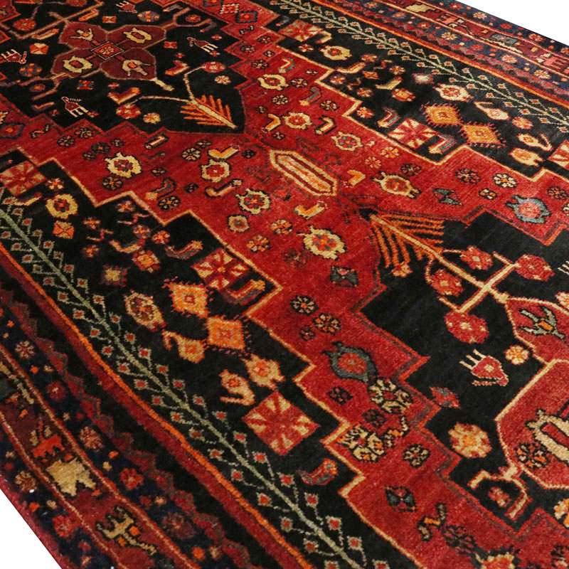 قالیچه دسبافت کرمانشاه با رنگ زمینه لاکی و حاشیه مشکی و مساحت 4 متر مربع و وزن 14.19 کیلوگرم است.