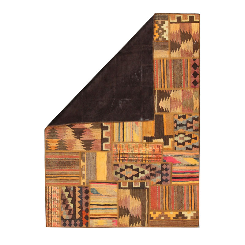 قالیچه دسبافت کلاژ با مساحت 2.88 متر مربع و وزن 10 کیلوگرم و 1 میلیمتر با طرح کلی خشتی قاب قابی است.