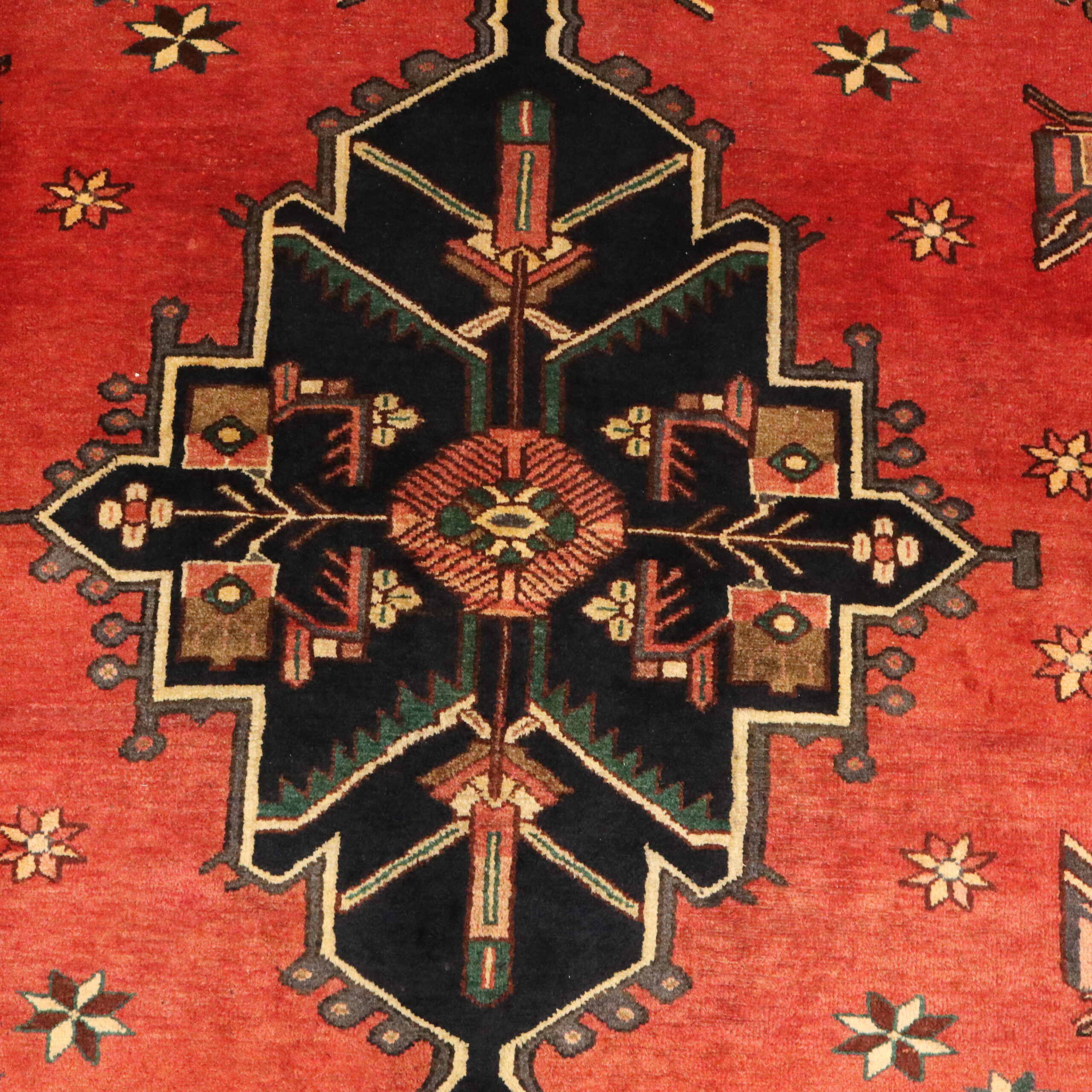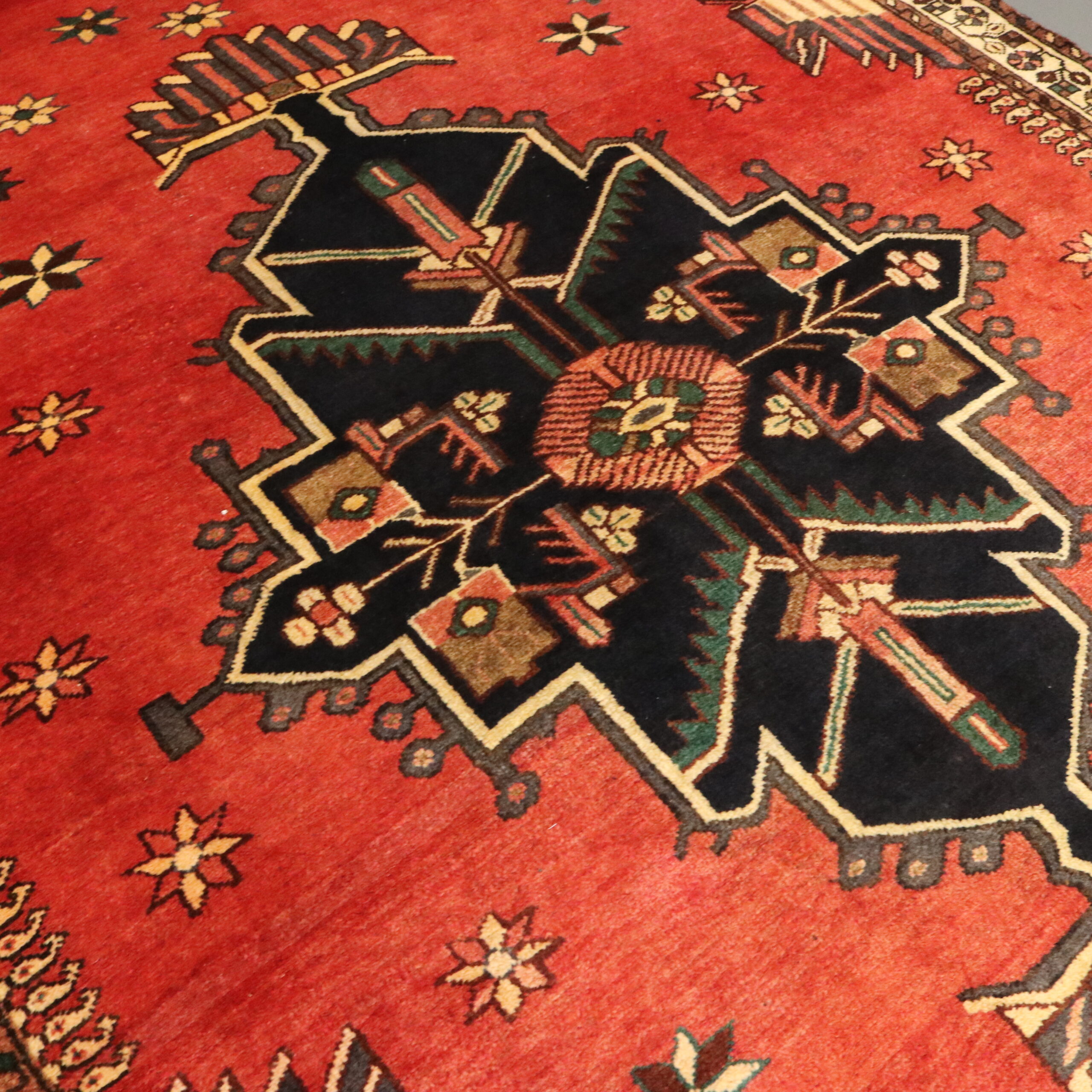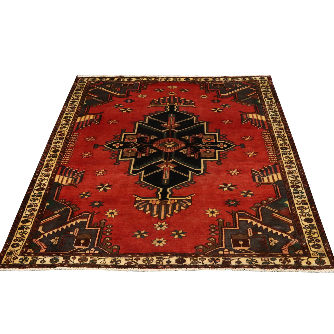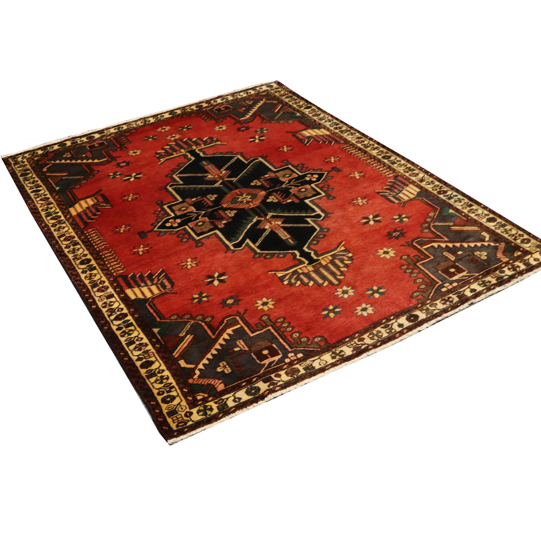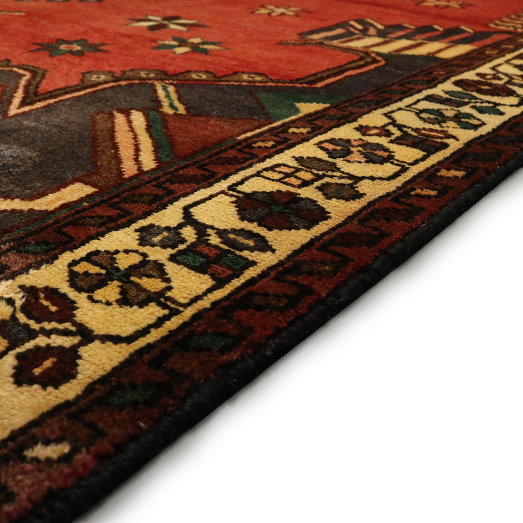 قالیچه ای که تصاویر ان را از ابعاد مختلف مشاهده میفرمایید دارای زمینه لاکی و رنگ حاشیه کرم میباشد.